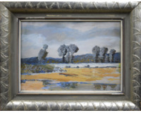 POPIS: Olej na lepence, rozměr 38 x 54 cm, zaskleno