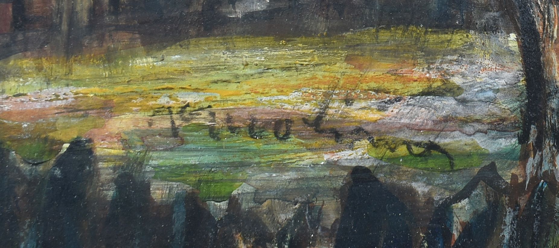 POPIS: Olej na lepence, rozměry: 29 x 40,5 cm, zaskleno