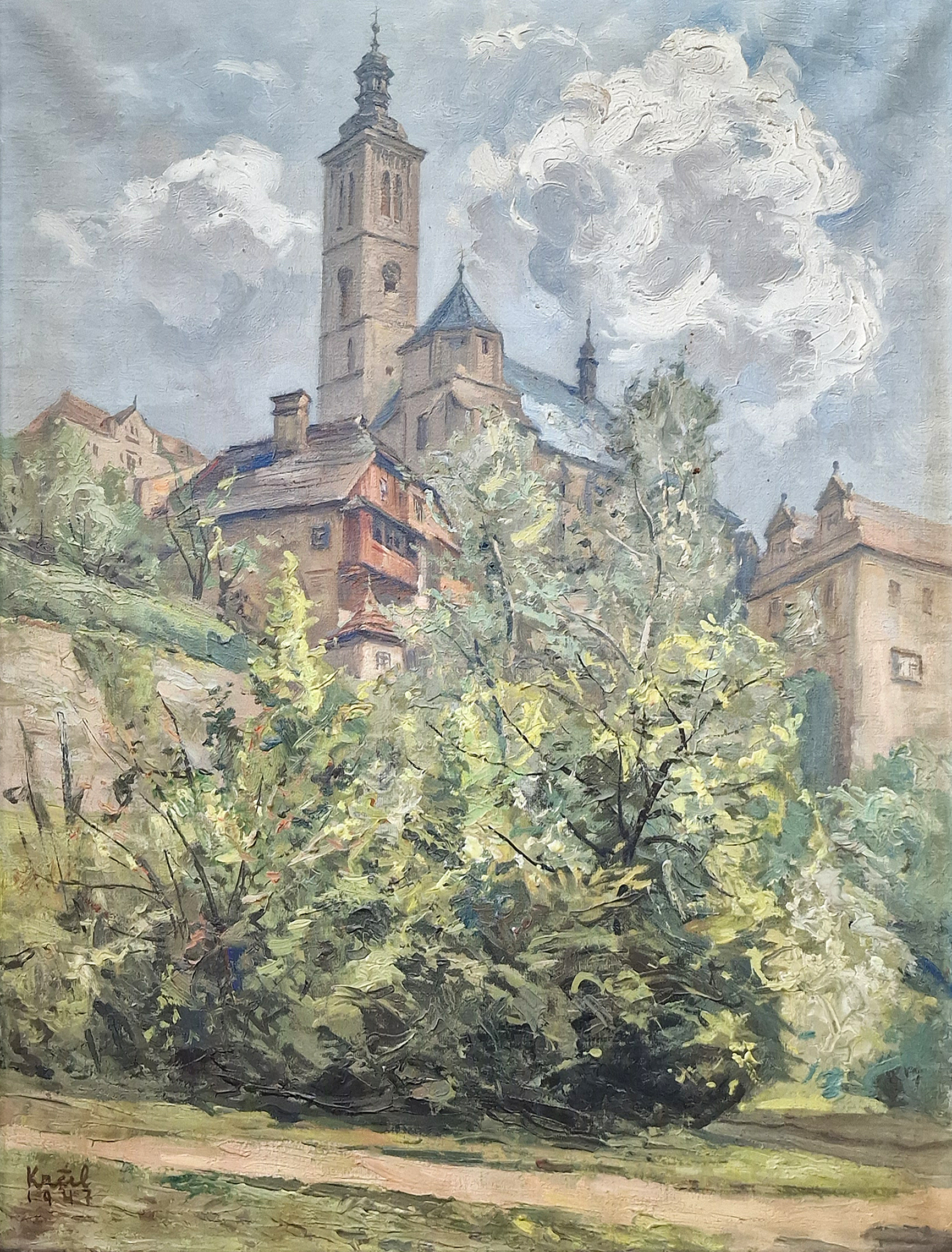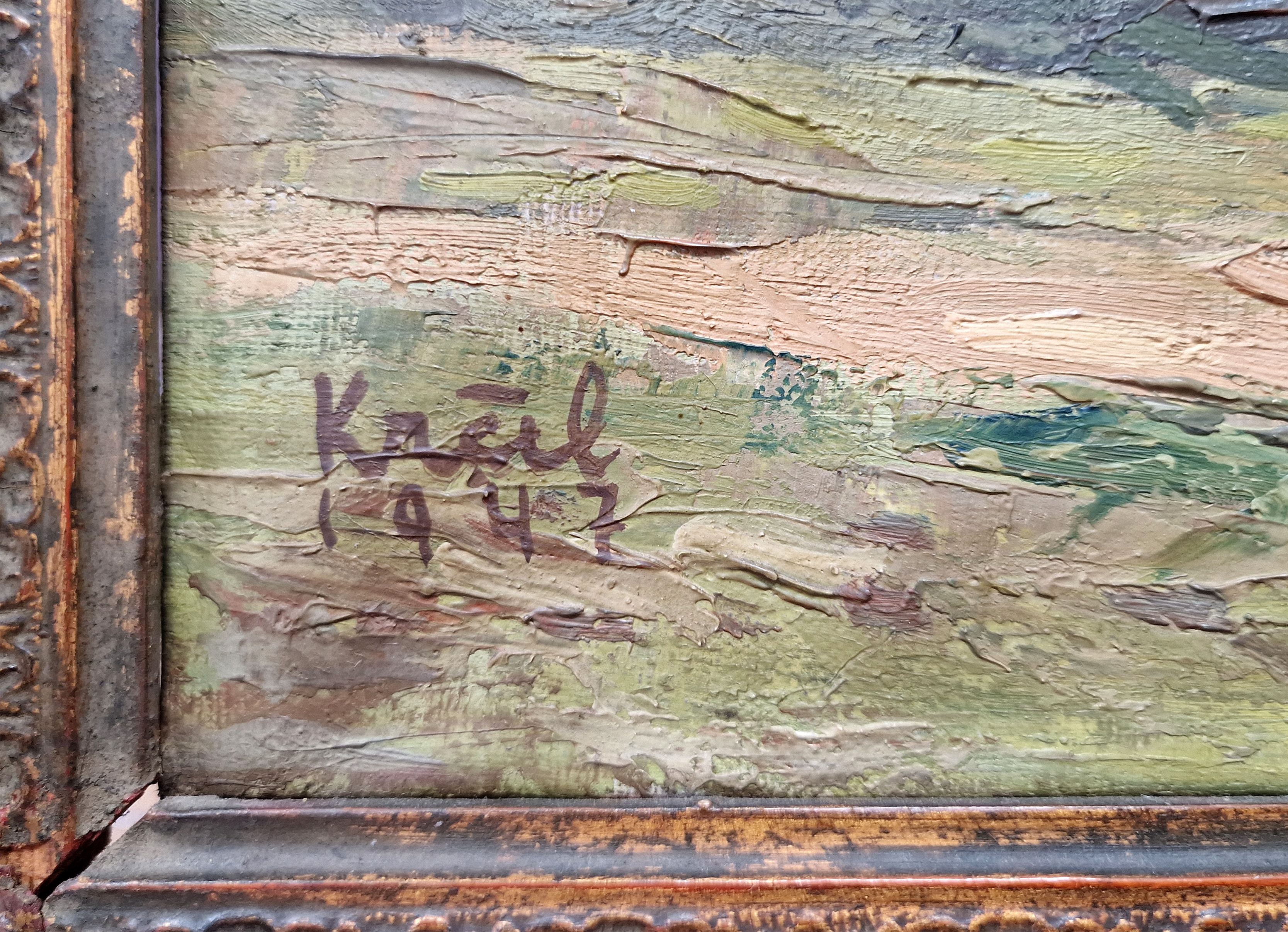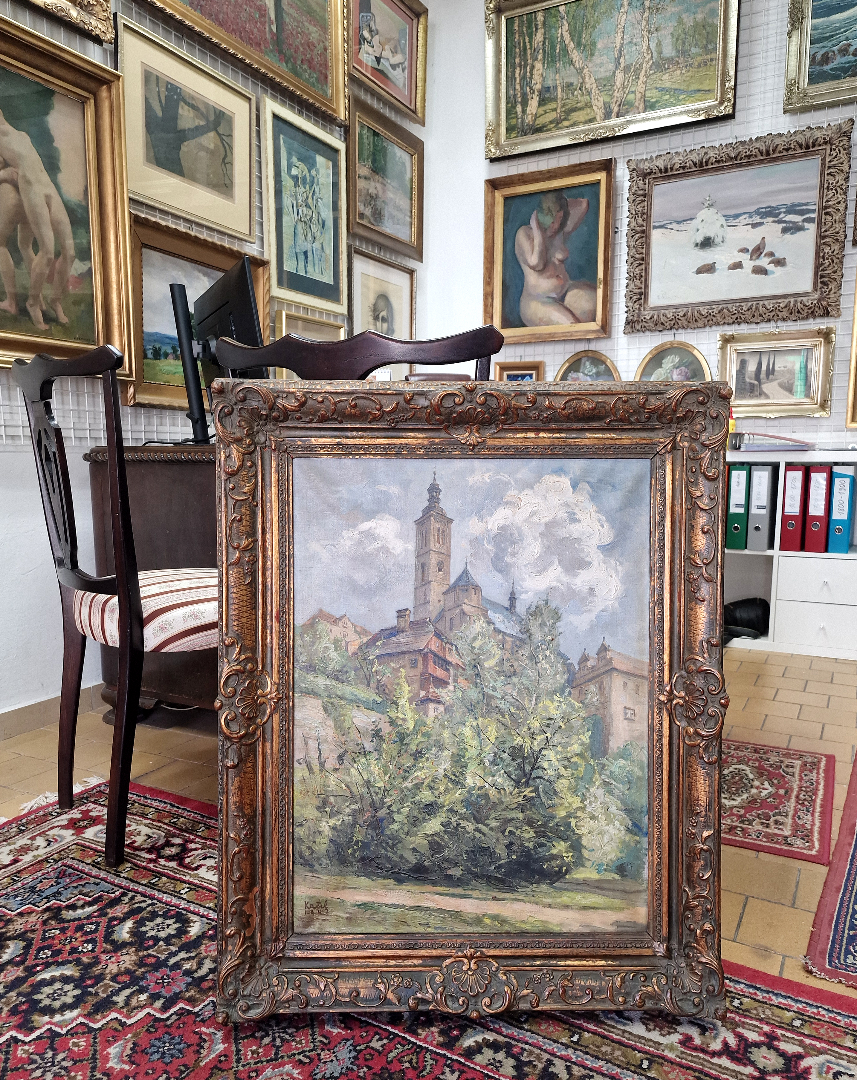 POPIS: Olej na plátně, rozměr 65 x 49 cm, ve vrchní části plátno mirně zvlněno