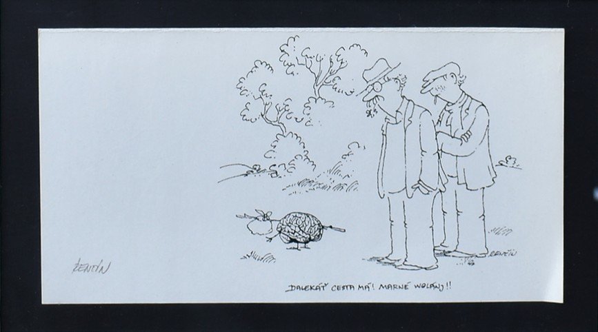 POPIS: Perokresba, rozměry listu: 10,5 x 20 cm, zaskleno