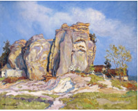 POPIS: Olej na lepence, rozměr 40 x 52 cm, zaskleno. Obraz pochází z malířova vrcholného období, datováno 1922. Ilustrační foto ze současným pohled na lokalitu Křineč (není součástí aukce)