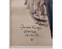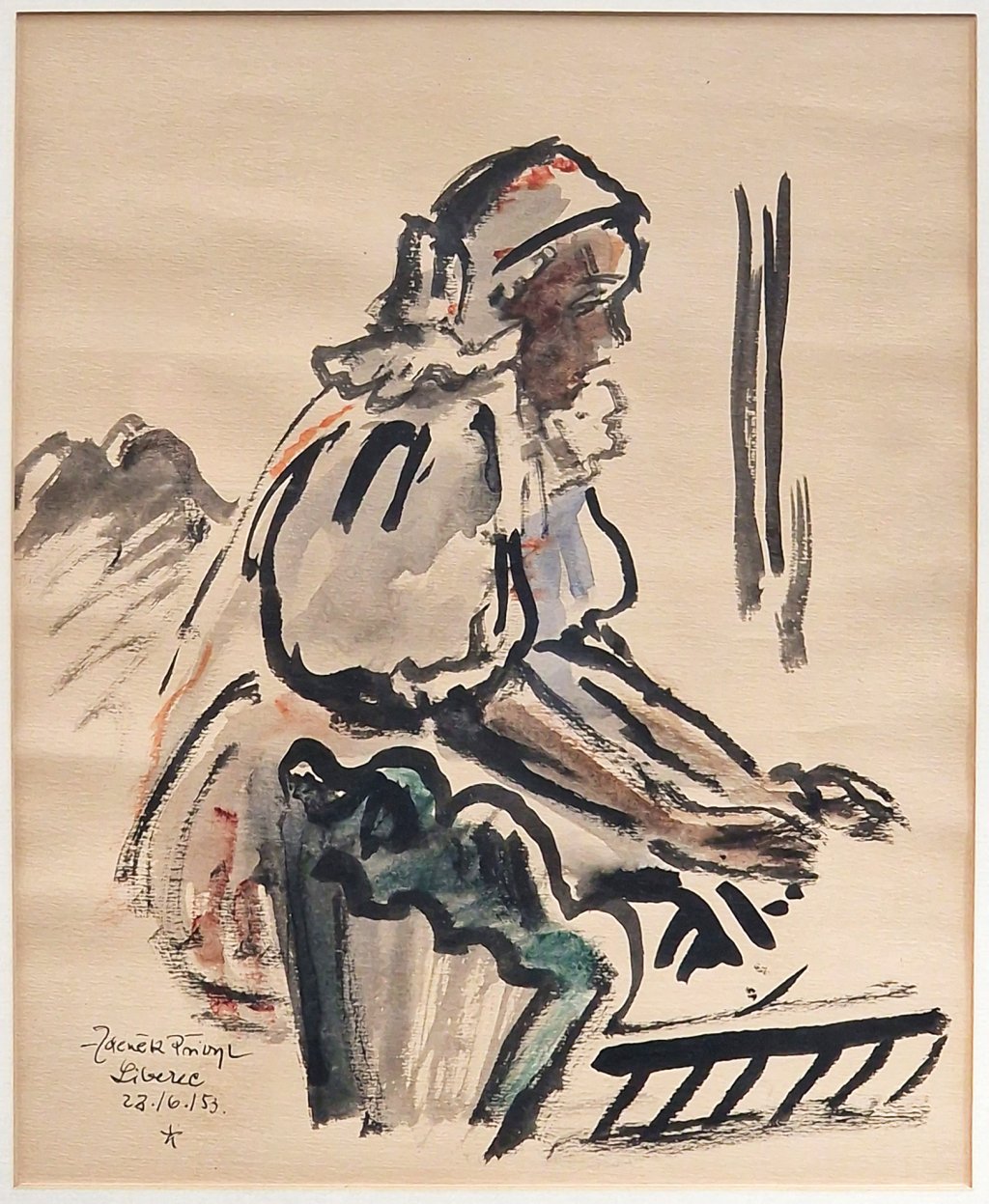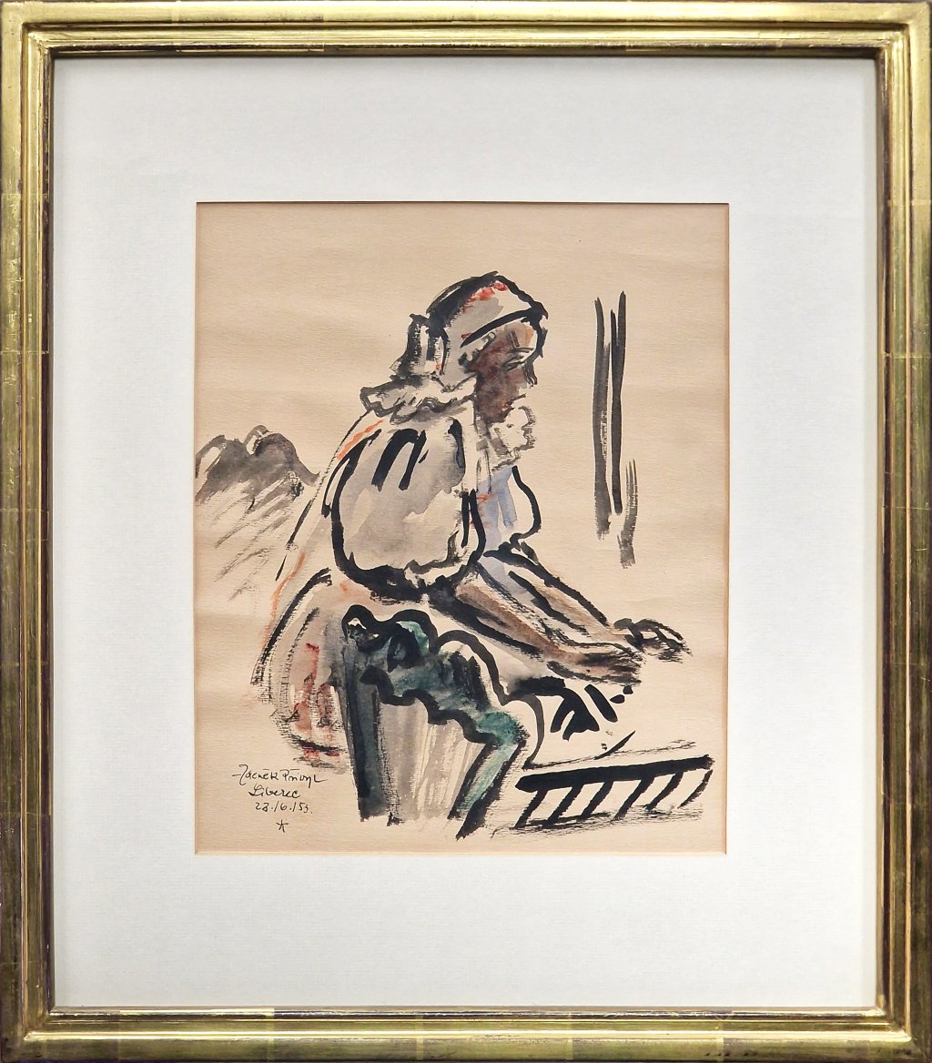 POPIS: Tuš + akvarel, rozměr ve výřezu 33 x 27 cm, zaskleno