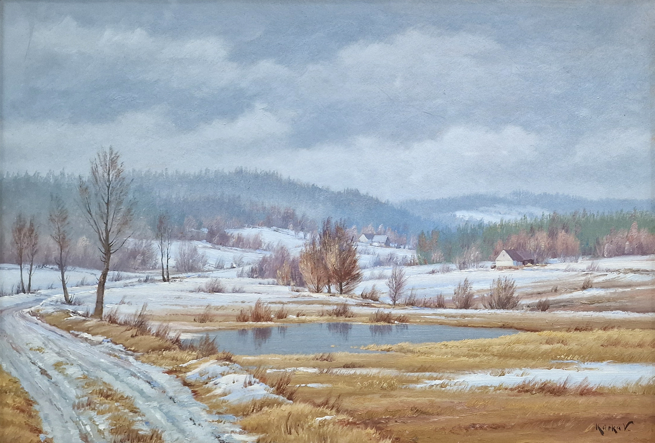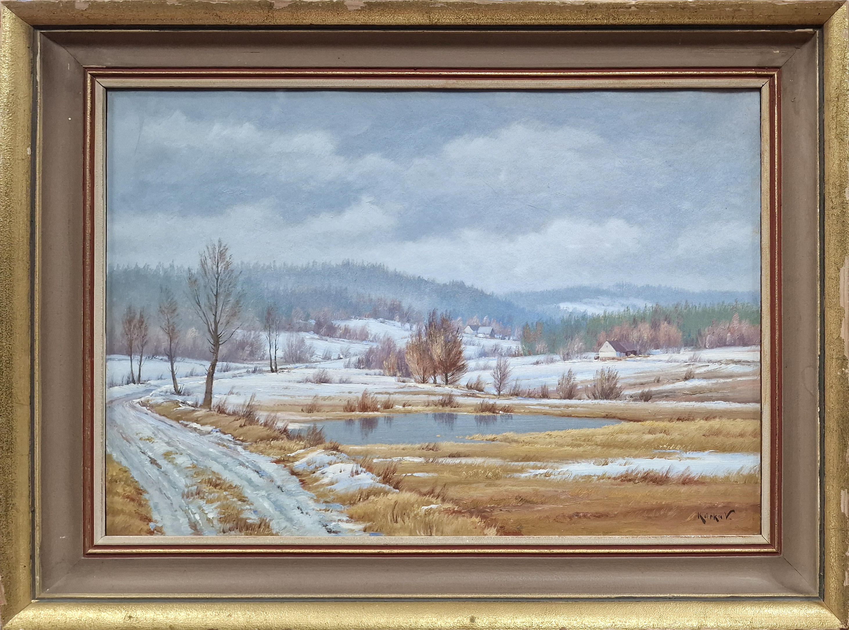 POPIS: Olej na lepence, rozměr 41 x 61 cm, zaskleno