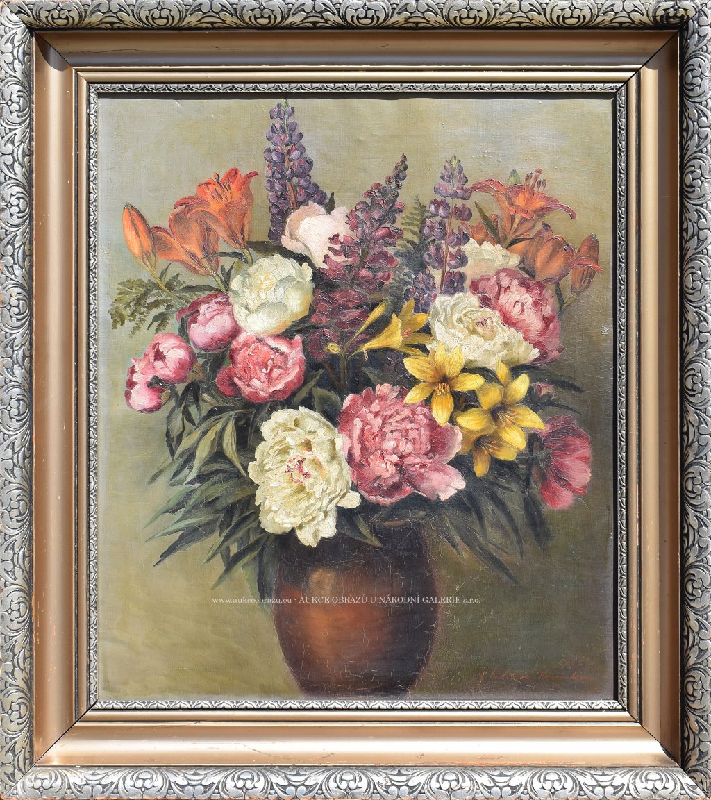POPIS: Olej na lepence, rozměr 65,5 x 55 cm, signováno vpravo dole F. Kafuňková - Kavánková 1952