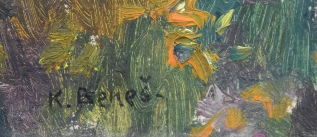 POPIS: Olej na lepence, rozměr 34,5 x 45 cm, zaskleno, rám poškozen