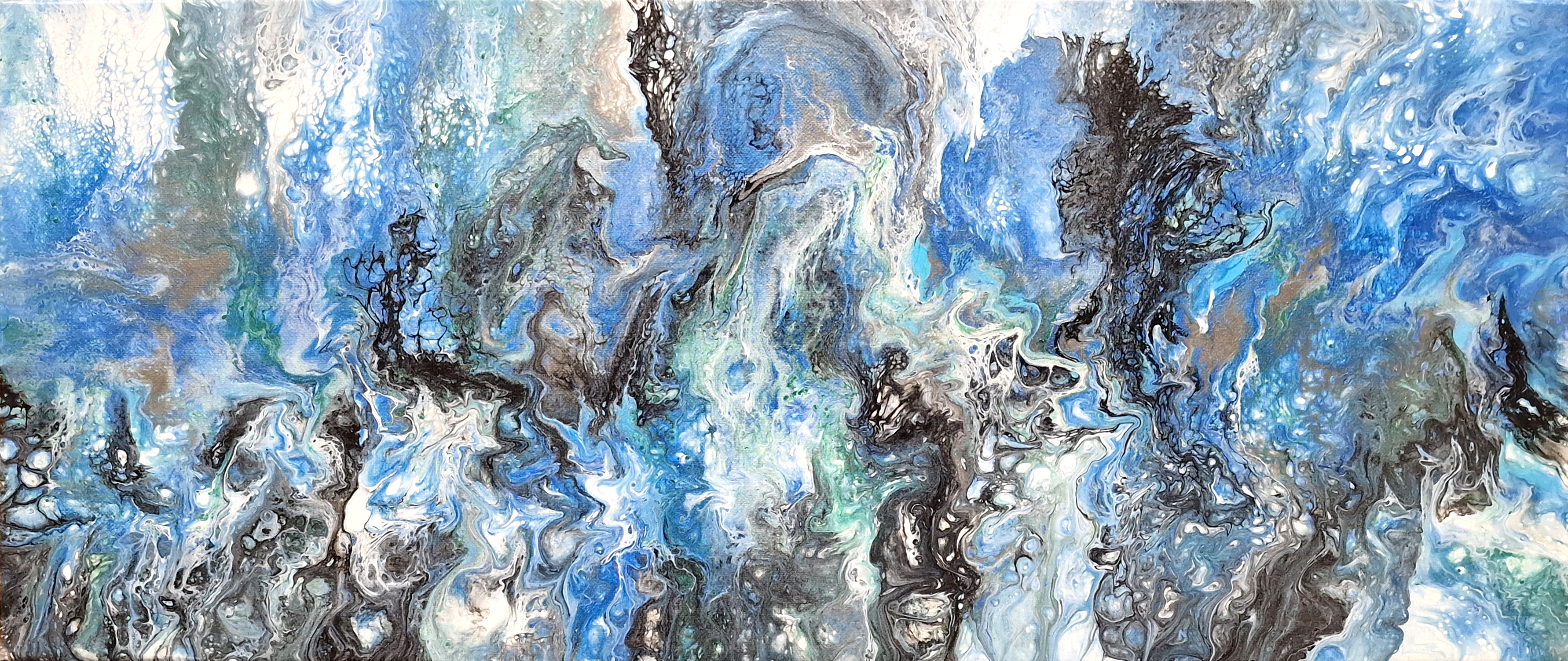 POPIS: Lití na plátně, rozměr 30 x 70 cm, nerámováno