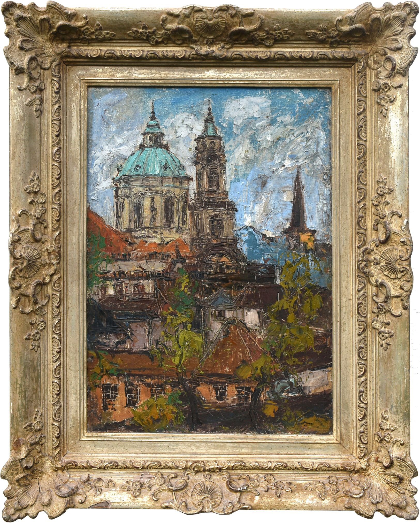 O AUTOROVI: František Max Narodil se 16. 11. 1895 v Libáni a zemřel roku 1969. Malíř krajin a vedut. Inženýr architekt. Byl žákem profesora Preislera na akademii umění a na technice profesora Liebschera a Blažíčka. Malovat především krajiny, panoramata z Prahy a obrazy pražských uliček a zákoutí. Malovat pastozně, používal mimo štětce i špachtle. Na studijních cestách byl v Paříži, Berlíně, Itálii, Cačihradu. Působil jako architekt u firmy Ing. V. Nekvasil, později se věnoval výhradně malířství. Talent pro výtvarné umění u něj objevil prof. Antonín Martínek během Maxova studia na reálce v Jičíně. Ve svých studiích pokračoval na AVU v Praze u prof. Jana Preislera. Současně studoval na ČVUT v Praze u prof. Adolfa Libschera a také navštěvoval hodiny prof. Oldřicha Blažíčka. Po ukončení studia nastoupil jako architekt do firmy Nekvasil v Praze, ale v době krize byl propuštěn. Svoji první výstavu uspořádal v Praze roku 1935. Výstava byla veřejností velice dobře přijata a kladně ohodnocena kritiky. Tento nečekaný úspěch odstartoval sérii dalších úspěšných výstav a podpořil také autorovu snahu tvořit nová díla. F. Max vystavoval několikrát v Praze (např. v Mazáčkově galerii) a v mnoha dalších českých městech. Nezapomněl však ani uspořádat výstavy v Jičíně, a to celkem třikrát, a také v rodné Libáni. Inspiraci nacházel autor především ve svých cestách do zahraničí. Několikrát navštívil Paříž, Berlín, Cařihrad, Itálii a další země. Atmosféru těchto měst a jejich zákoutí dokázal, díky citu pro architekturu a mistrnému používání výjimečné techniky pastózních nánosů barev, dokonale zachytit na svých plátnech. Pronikl do Evropy Především jeho olejomalby zdobí mnohé zastupitelské úřady nejen v Jičíně, ale i v zahraničí. Nalezneme je tak v Paříži, Londýně, Stockholmu, Oslu, Linci a ve Vídni. Při svých cestách se rád navracel do Jičína a Libáně.