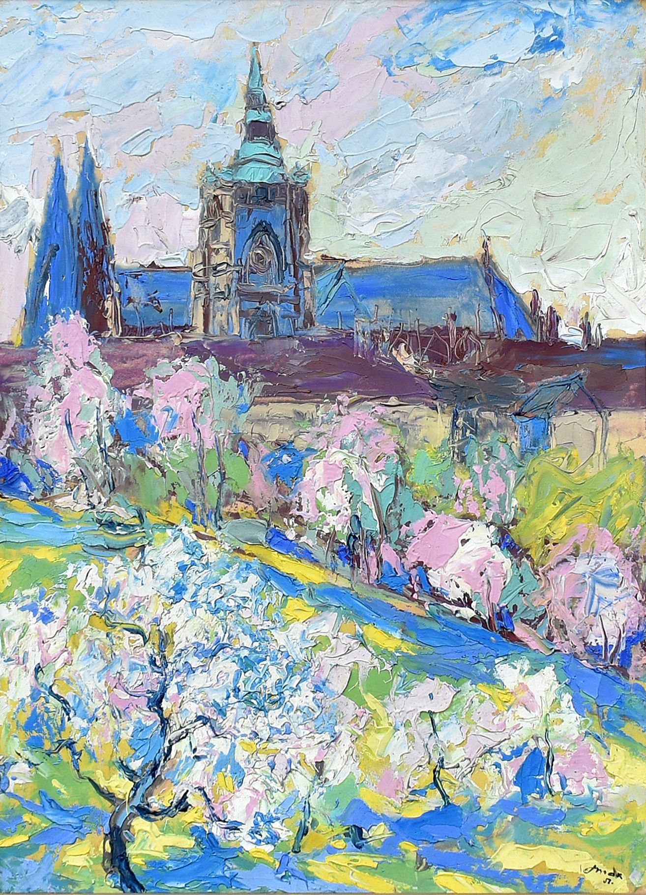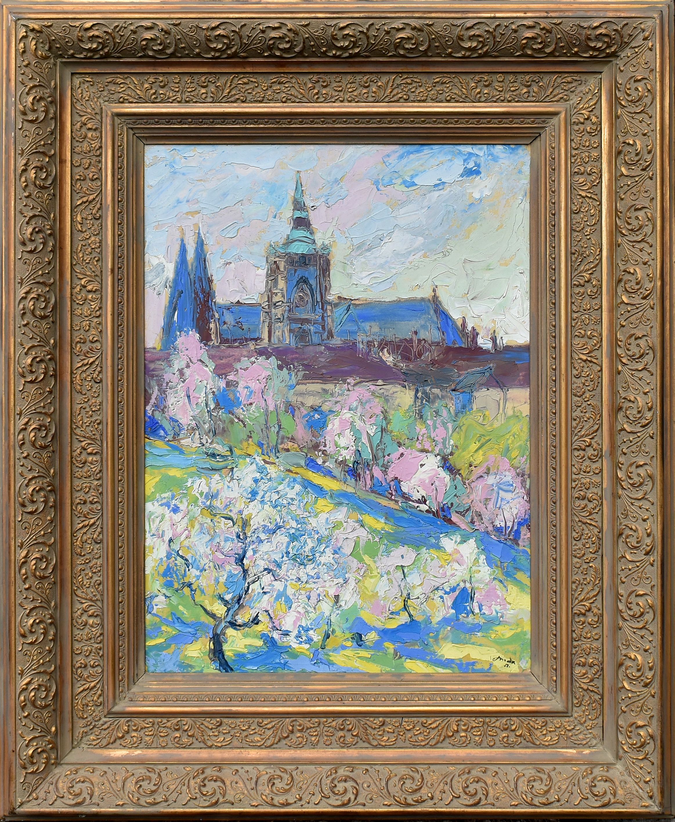 O AUTOROVI: František Max Narodil se 16. 11. 1895 v Libáni a zemřel roku 1969. Malíř krajin a vedut. Inženýr architekt. Byl žákem profesora Preislera na akademii umění a na technice profesora Liebschera a Blažíčka. Malovat především krajiny, panoramata z Prahy a obrazy pražských uliček a zákoutí. Malovat pastozně, používal mimo štětce i špachtle. Na studijních cestách byl v Paříži, Berlíně, Itálii, Cačihradu. Působil jako architekt u firmy Ing. V. Nekvasil, později se věnoval výhradně malířství. Talent pro výtvarné umění u něj objevil prof. Antonín Martínek během Maxova studia na reálce v Jičíně. Ve svých studiích pokračoval na AVU v Praze u prof. Jana Preislera. Současně studoval na ČVUT v Praze u prof. Adolfa Libschera a také navštěvoval hodiny prof. Oldřicha Blažíčka. Po ukončení studia nastoupil jako architekt do firmy Nekvasil v Praze, ale v době krize byl propuštěn. Svoji první výstavu uspořádal v Praze roku 1935. Výstava byla veřejností velice dobře přijata a kladně ohodnocena kritiky. Tento nečekaný úspěch odstartoval sérii dalších úspěšných výstav a podpořil také autorovu snahu tvořit nová díla. F. Max vystavoval několikrát v Praze (např. v Mazáčkově galerii) a v mnoha dalších českých městech. Nezapomněl však ani uspořádat výstavy v Jičíně, a to celkem třikrát, a také v rodné Libáni. Inspiraci nacházel autor především ve svých cestách do zahraničí. Několikrát navštívil Paříž, Berlín, Cařihrad, Itálii a další země. Atmosféru těchto měst a jejich zákoutí dokázal, díky citu pro architekturu a mistrnému používání výjimečné techniky pastózních nánosů barev, dokonale zachytit na svých plátnech. Pronikl do Evropy Především jeho olejomalby zdobí mnohé zastupitelské úřady nejen v Jičíně, ale i v zahraničí. Nalezneme je tak v Paříži, Londýně, Stockholmu, Oslu, Linci a ve Vídni. Při svých cestách se rád navracel do Jičína a Libáně.