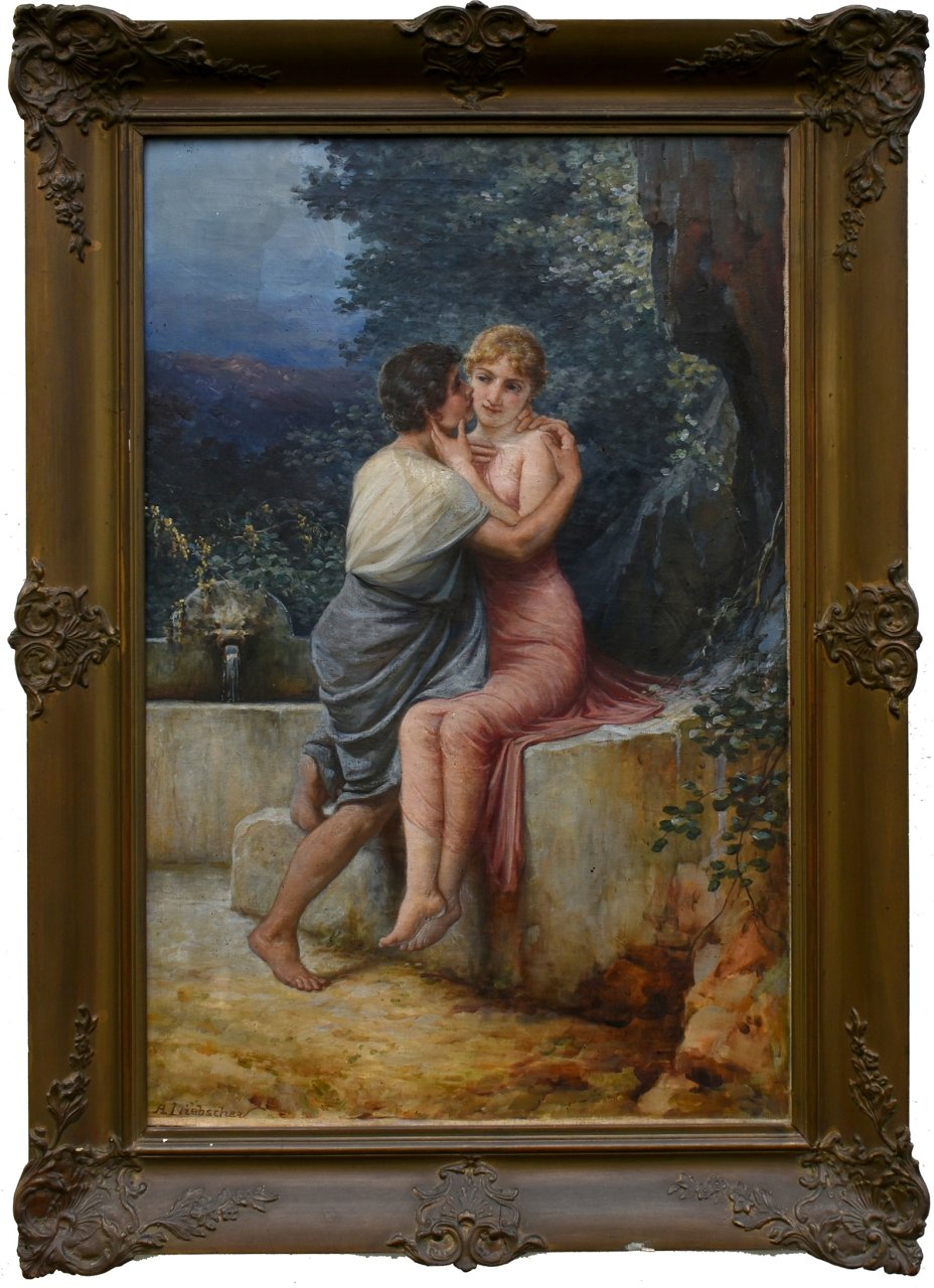 POPIS: Olej na plátně, rozměry: 77 x 51 cm. Poslední foto s protějškem obrazu, je pouze ilustrační. Je zřejmé že se jedná o pendant k obrazu nabízenému výše.