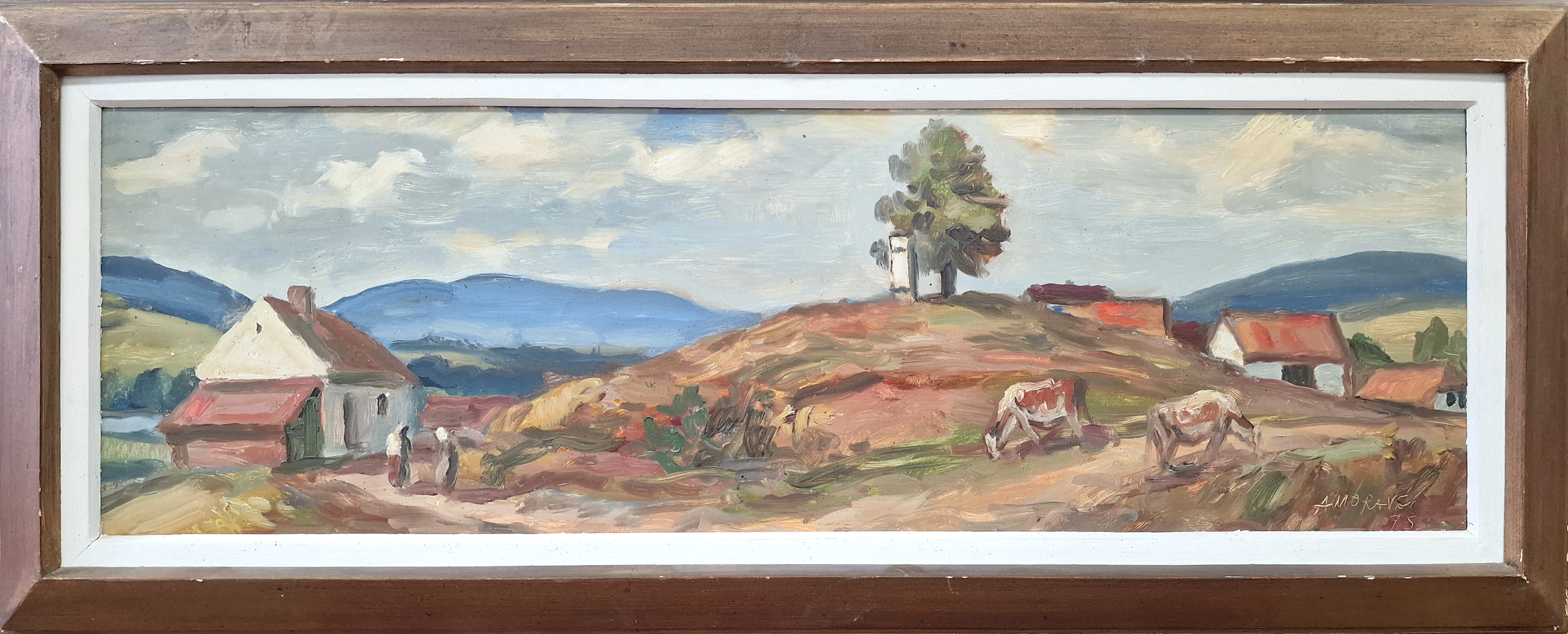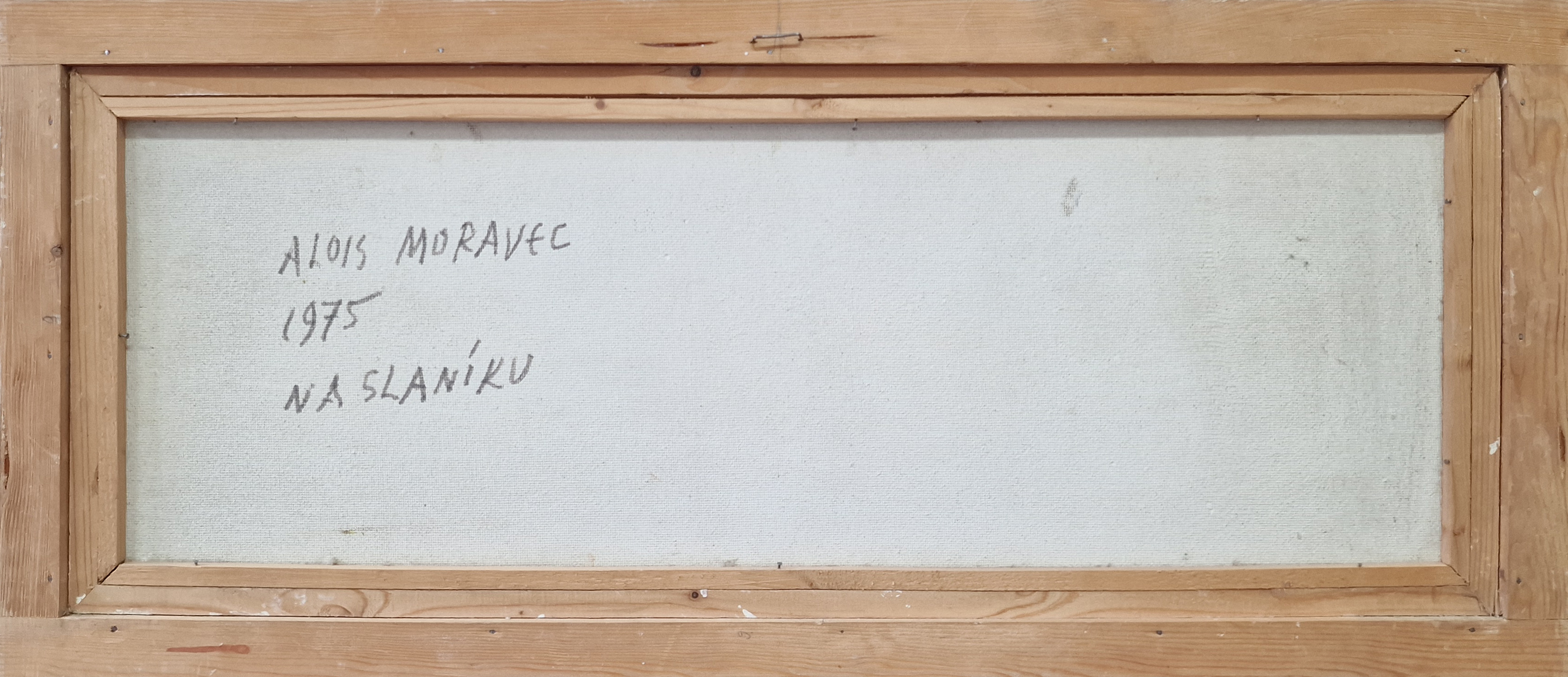 POPIS: Olej na desce, rozměr 28 x 86 cm