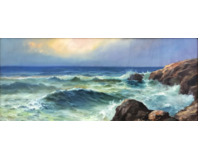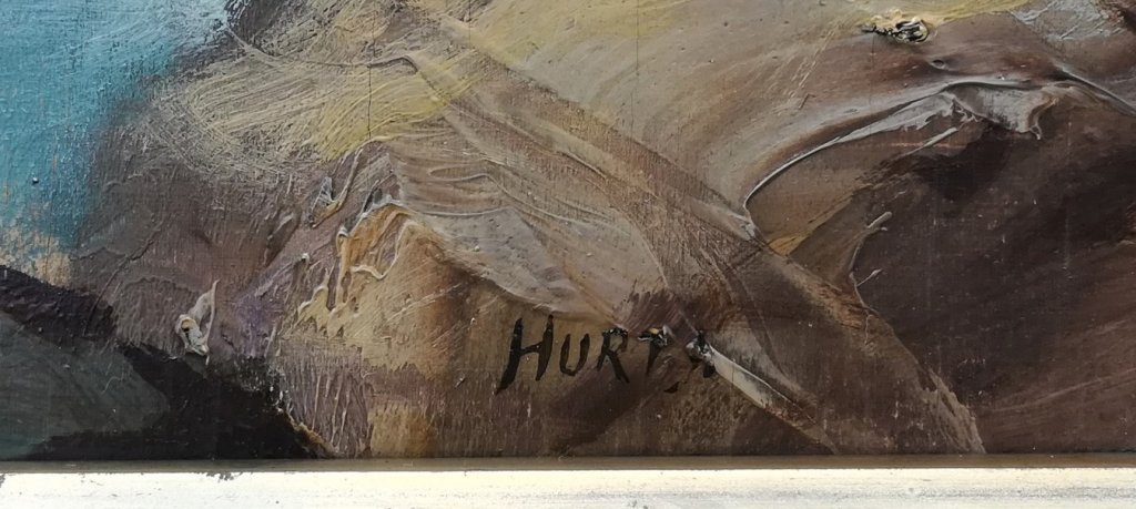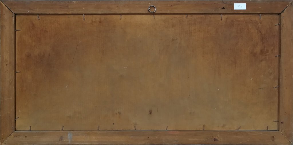 POPIS: Olej na překližce, rozměry : 38 x 87 cm, prasklina v malbě