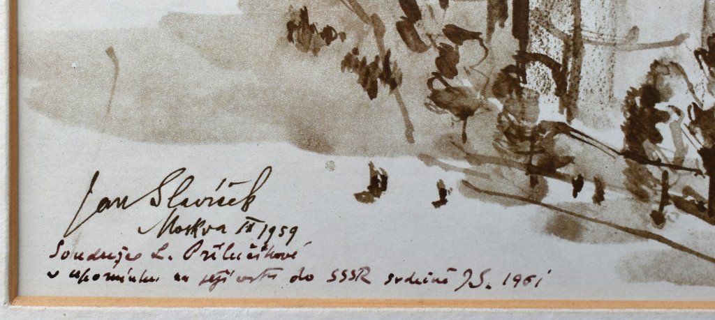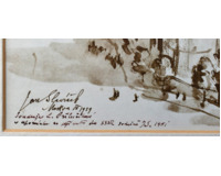 POPIS: Lavírovaná kresba, rozměr ve výřezu pasparty: 24 x 30 cm, zaskleno