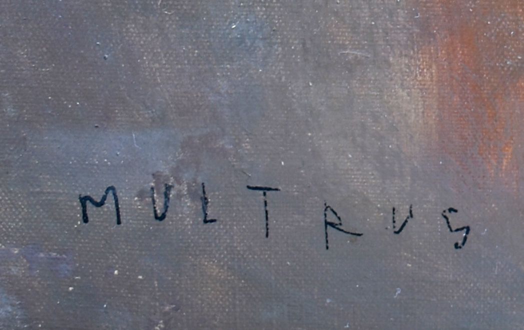 O AUTOROVI: Narodil se 12. 3. 1898 v Praze na Vinohradech a zemřel v roce 1957. Studoval u prof. J. Bendy na umělecko průmyslové škole v Praze, poté na akademii výtvarného umění v Praze, zde byl žákem prof. V. Nechleby. V jeho žánrech je patrný obdiv pro staré mistry. Multrus je v kompozici složitější, tóny jeho barev jsou kalnější, šedavé, hnědé. Člen Jednoty umělců výtvarných ( 1924 - 1931 ) , se kterou pravidelně vystavoval. Měl ateliér v Praze nedaleko Prašné brány. Věnoval se krajinomalbě a figurální tvorbě. Realistickým způsobem zachycoval především sociální a společenské motivy. Zastoupen ve sbírkách Národní galerie v Praze a mnoha dalších krajských i oblastních galerií. Po obdržení cestovního stipendia Hlávkovy nadace podnikl v roce 1922 studijní cestu do Jugoslávie a v roce 1923 do Itálie, kde studoval díla starých mistrů a jak sám pravil, hledal tak základ pro svůj růst a pozdější experimentující tvorbu. Další studijní cesty (po roce 1931) podnikl do Španělska, Maroka, Německa, Rakouska a Holandska. Oporou mu vždy bylo celoživotní přátelství s malířem Jaroslavem Malínským. Miloval hudbu a přátelil se s hudebními skladateli J. B. Foerstrem a O. Ostrčilem. Od roku 1939 se začal zhoršovat jeho zdravotní stav, měl cukrovku a dostavily se problémy s chůzí. Po roce 1953 bojoval s kombinací několika těžkých chorob a byl odkázán na život v ateliéru, kde stále pracoval a téměř nevycházel. Při jedné z návštěv jeho bratra v umělcově ateliéru došlo k poškození komína a oba bratři byli přiotráveni oxidem uhelnatým. Josef Multrus v důsledku svého dlouhodobě špatného zdravotního stavu pak 3. ledna 1957 umírá.
