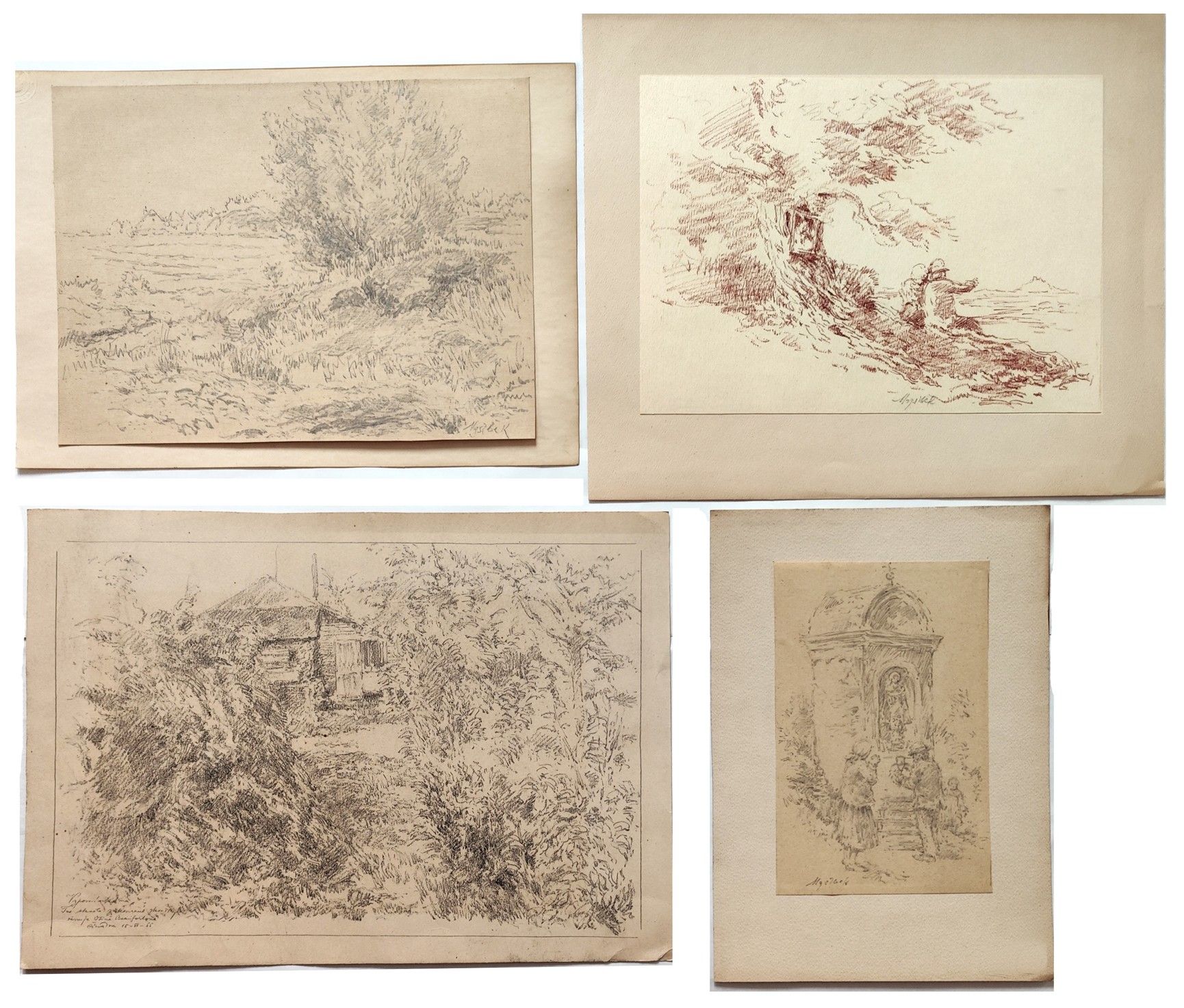 POPIS: Čtyři kresby rudkou a uhlem na papíru, rozměry:21x 13 /22 x 30 /21 x 29/ 28 x 40 cm cm, volné listy