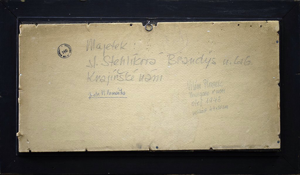 POPIS: Olej na překližce, rozměr 20 x 44 cm, technika olejomalby se u Viléma Plocka vyskytuje na trhu vzácně. Dílo vystaveno v Mánesu v roce 1944.