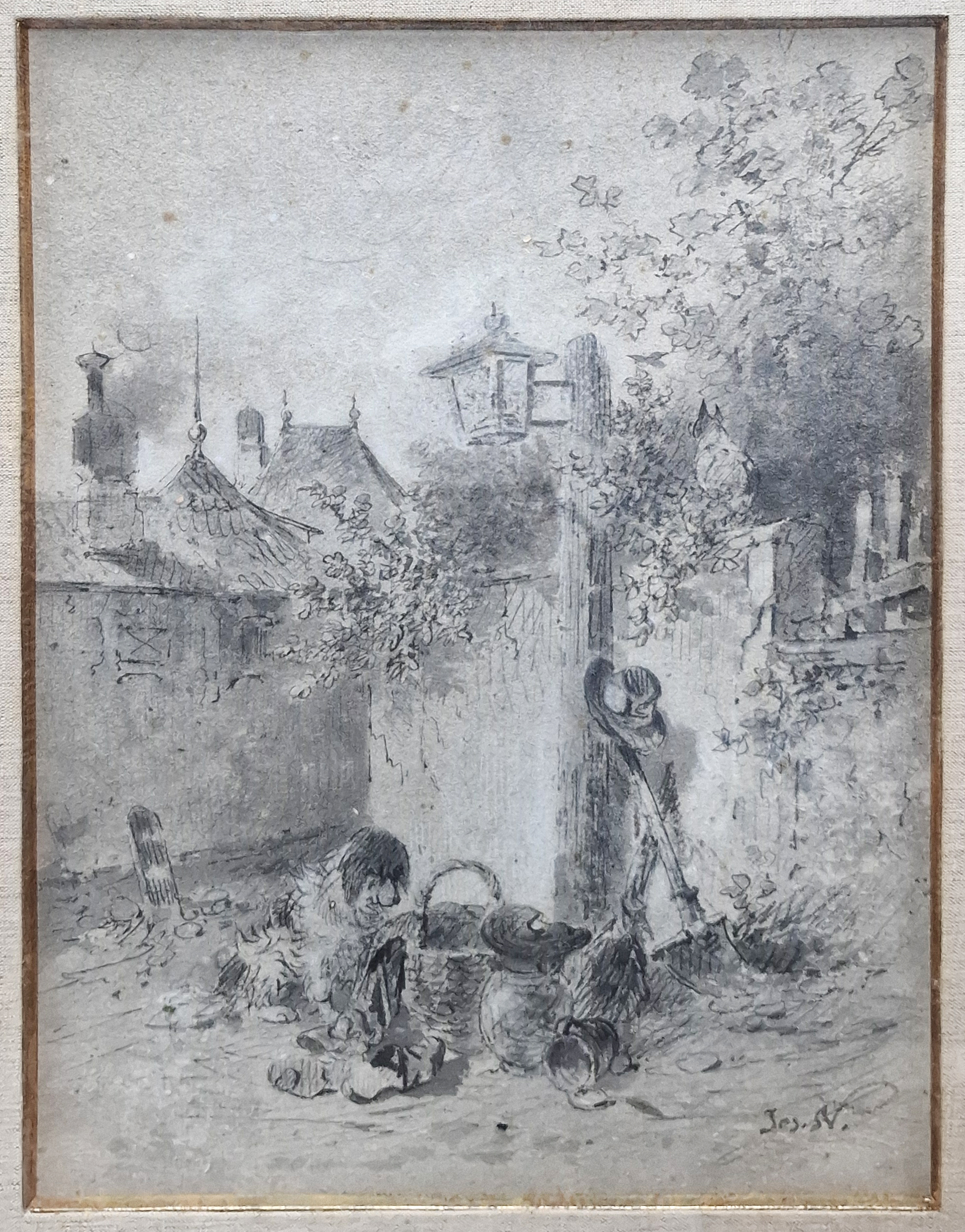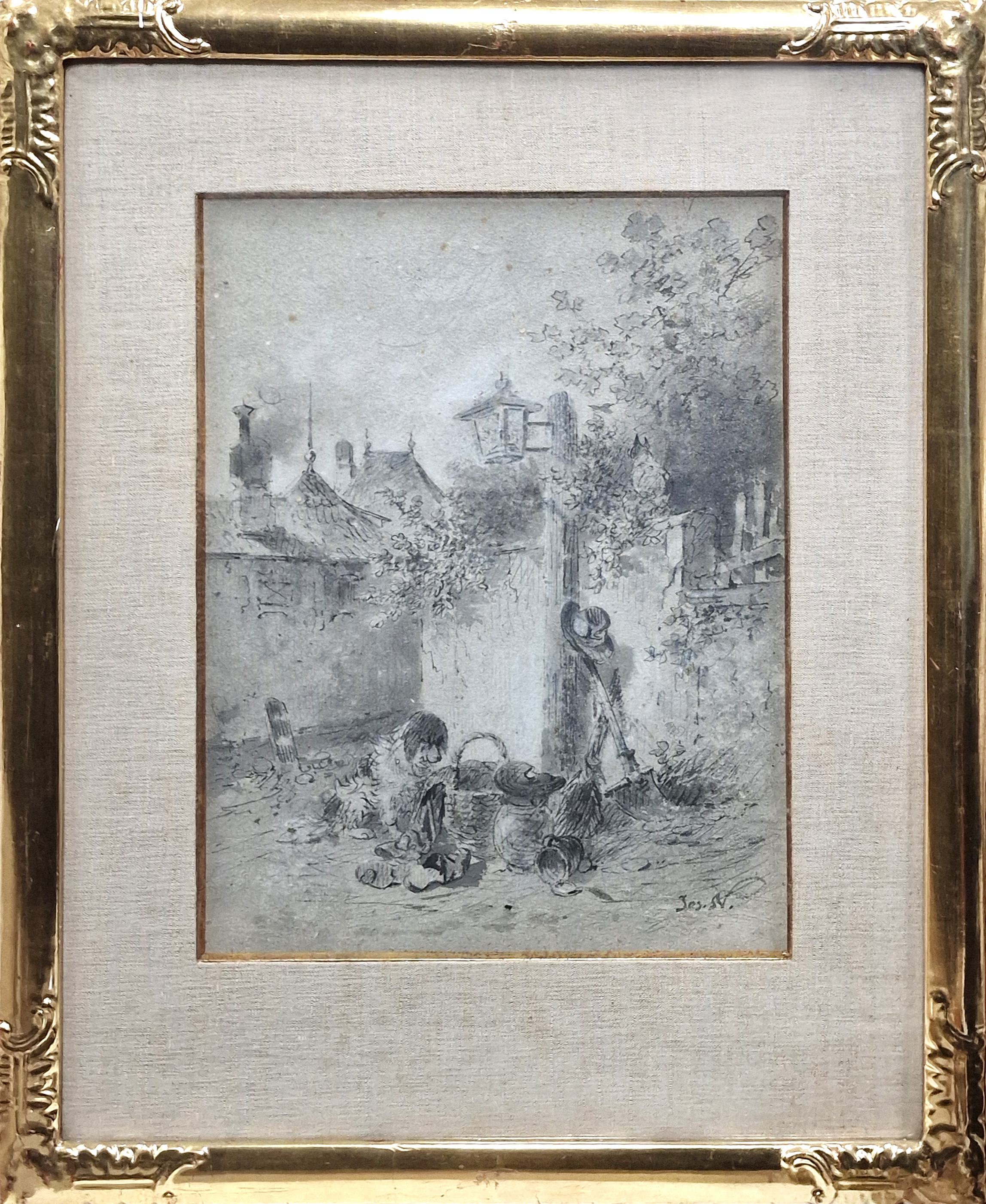 POPIS: Tuš + akvarel, rozměr ve výřezu 34 x 26 cm, zaskleno, drobné flíčky v kresbě