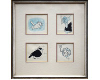 POPIS: 4 x kolorovaná kresba tuší, rozměry včetně rámu 40,5 x 39,5 cm, zaskleno
