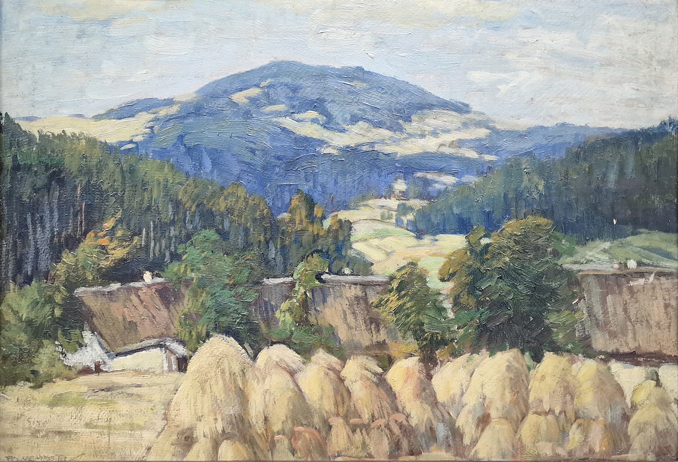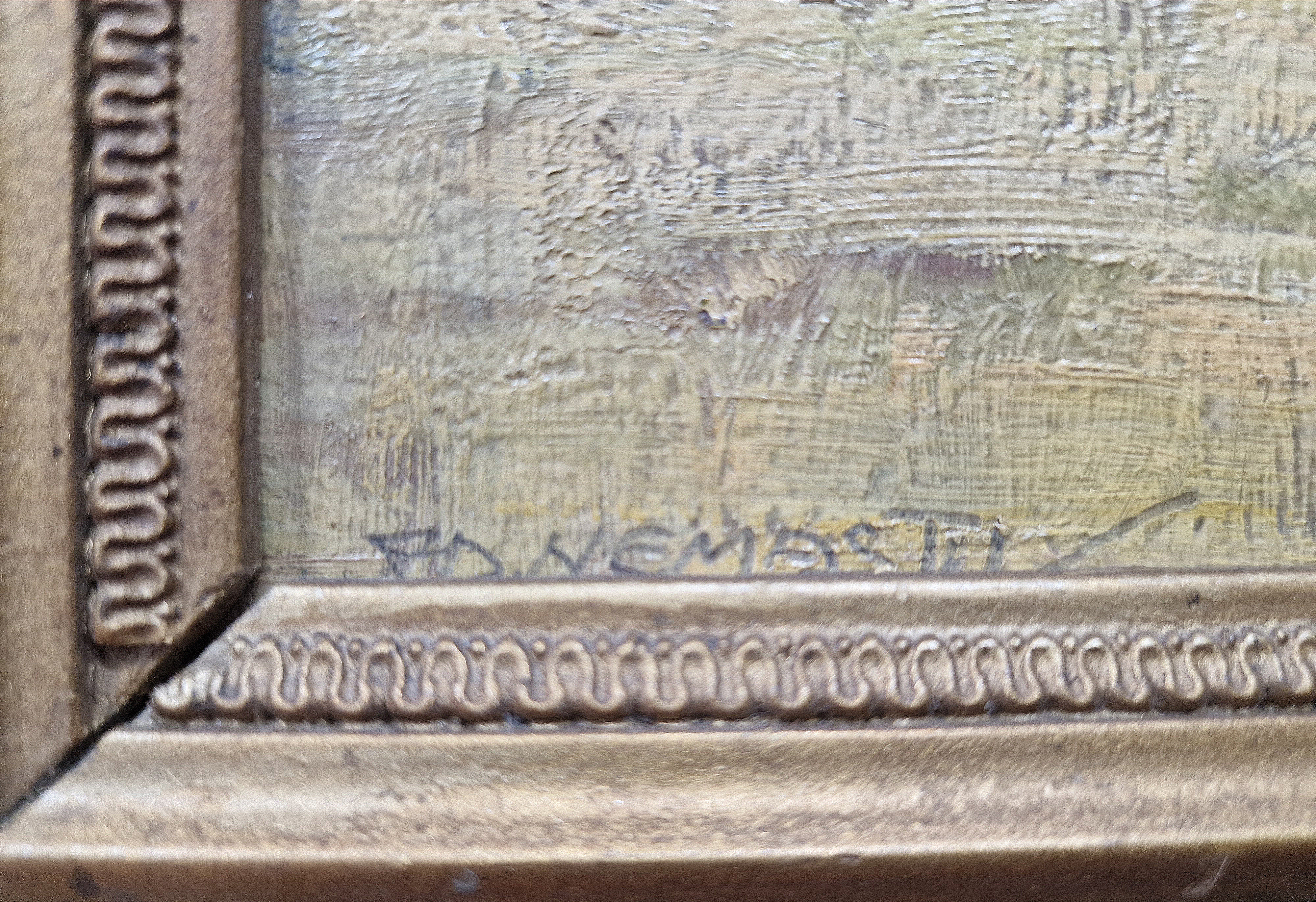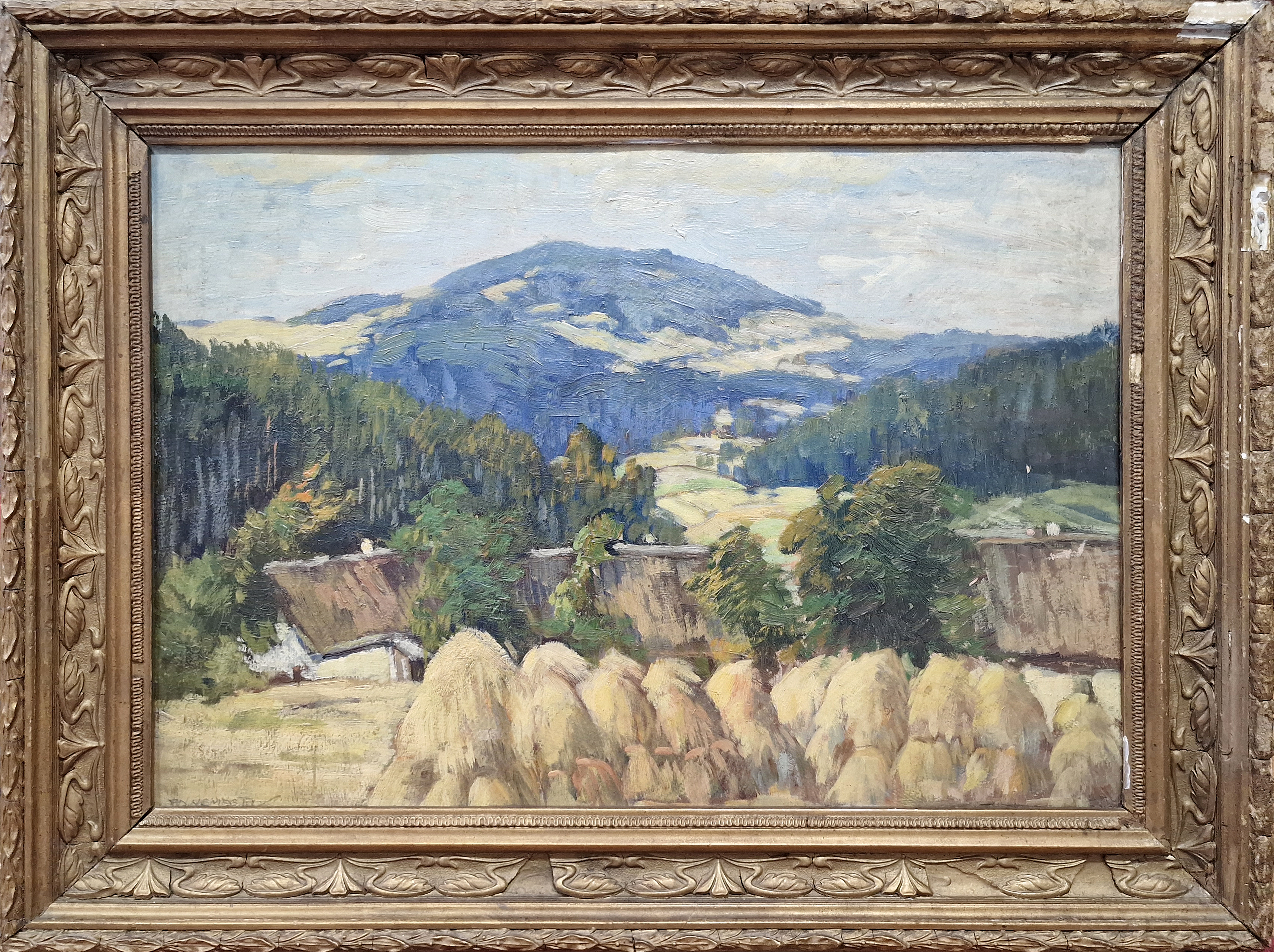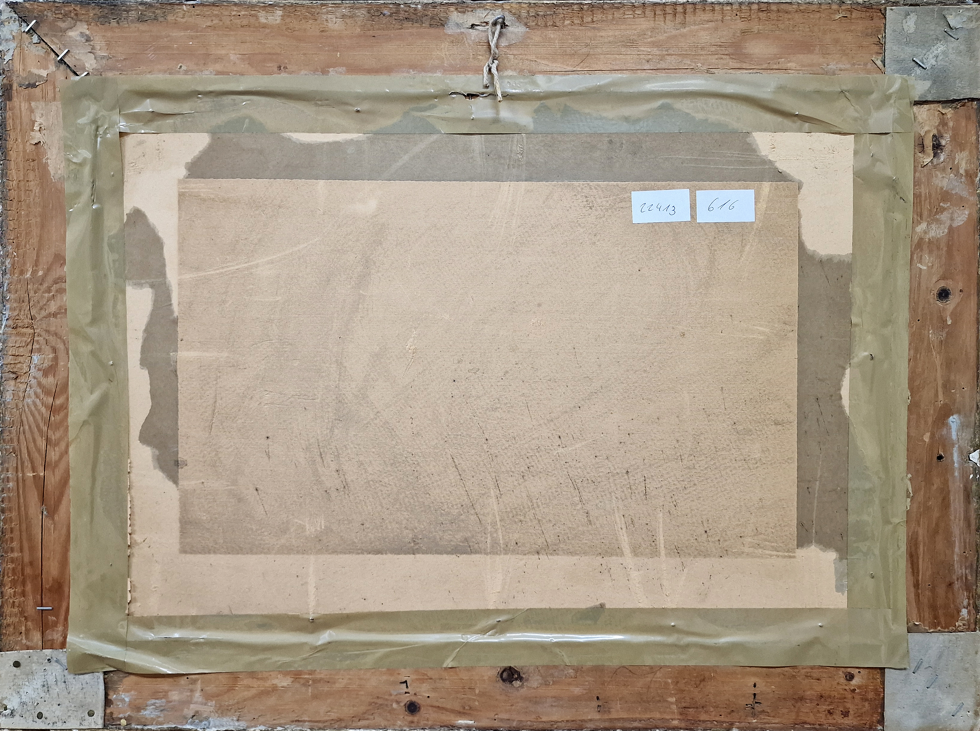 POPIS: Olej na lepence, rozměr 36 x 53 cm, rám poškozen