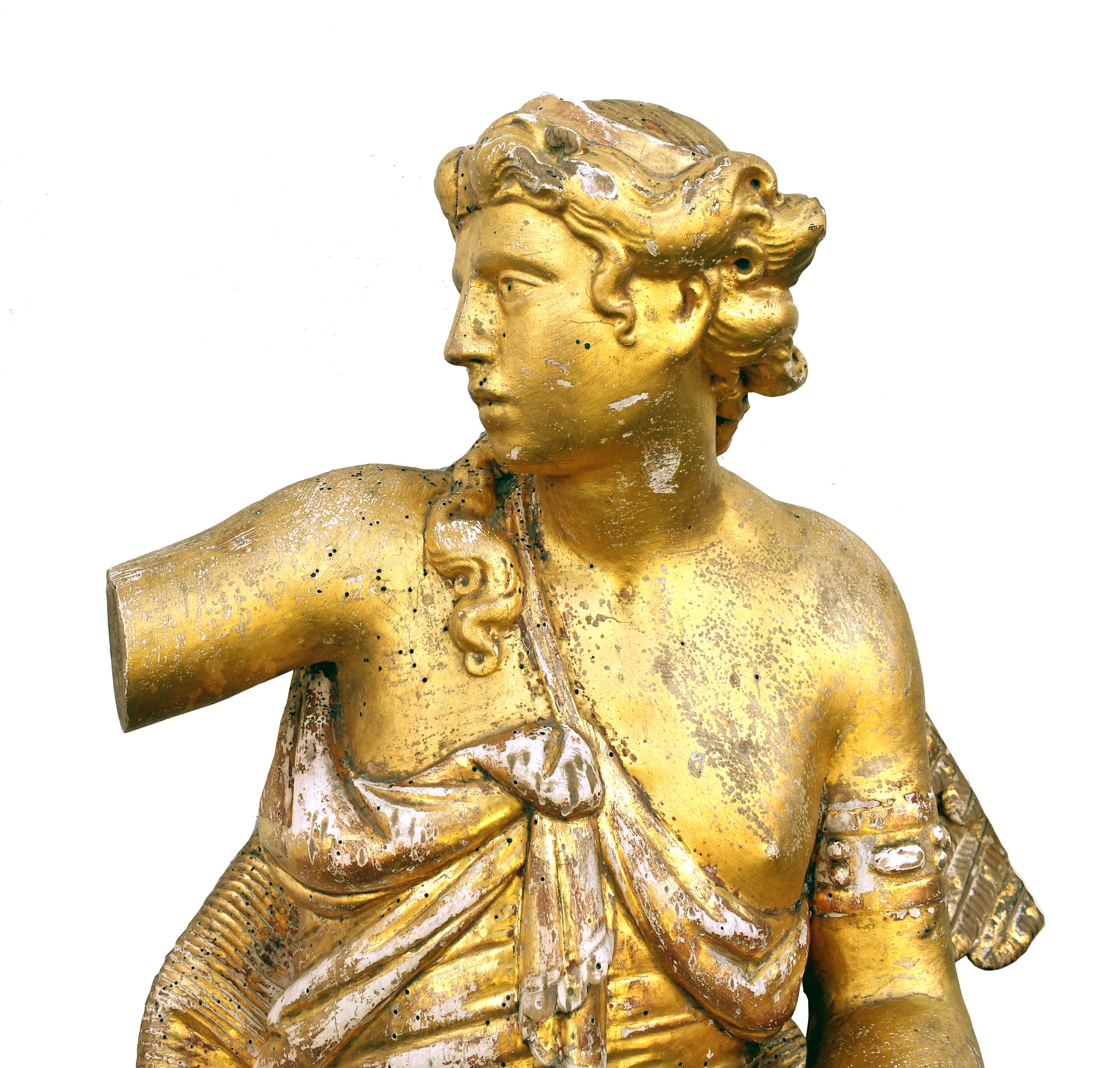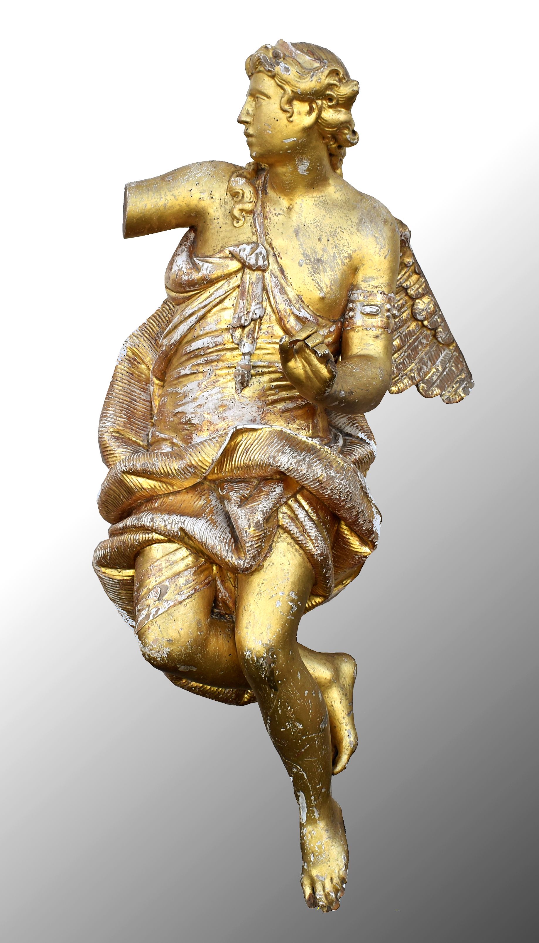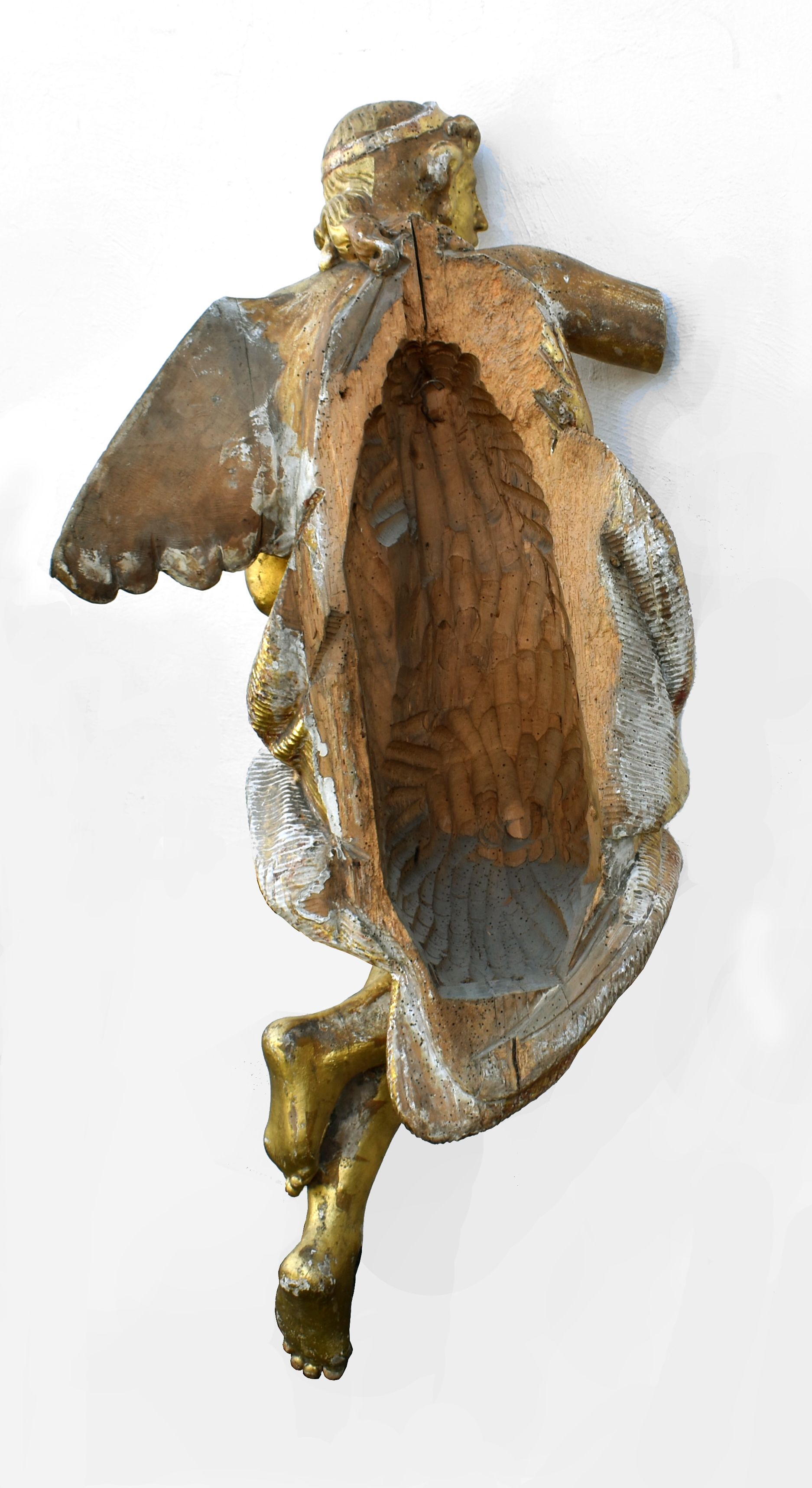 POPIS: Dřevěná polychromovaná plastika.. výška 120 cm, zlaceno , poškozeno