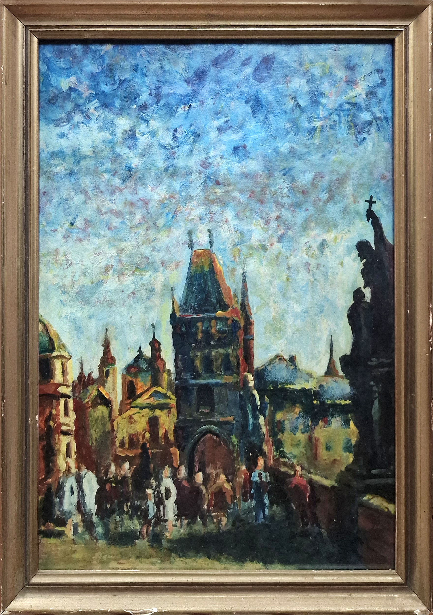 POPIS: Olej na lepence, rozměr 38 x 27 cm, zaskleno