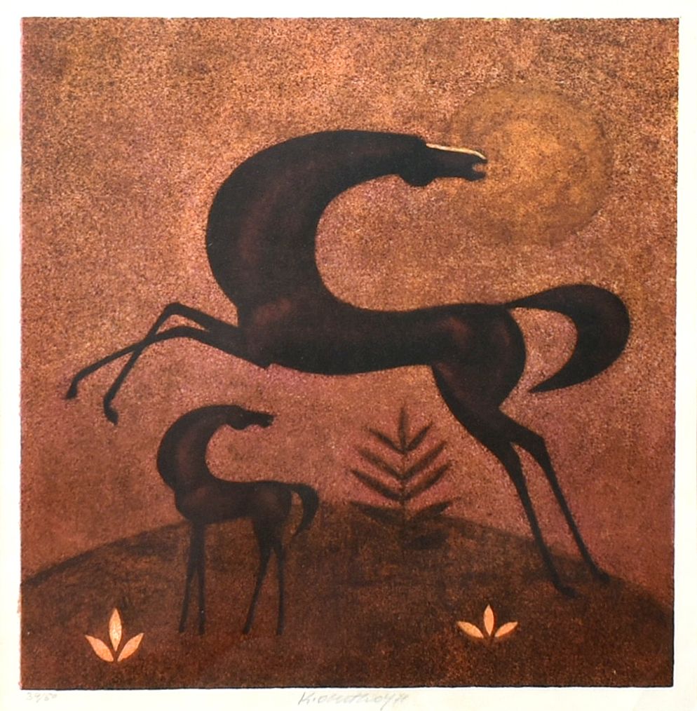 O AUTOROVI: Narodil se 15. 7. 1921 v Praze a zemřel 30. 6. 1996 tamtéž. Malí, grafik. Vyučil se kamenotiskařem v Průmyslové tiskárně v Praze v letech 1938 – 1940, studoval na Ukrajinské akademii u profesorů I. Kluce, V. Pukla a V. Silovského na AVU v Praze, kde v roce 1950 absolvoval čestný rok. Byl členem SČUG Hollar. Věnoval se malbě, volné a drobné grafice a volné kresbě. Vytvořil stovky exlibris, provedených většinou výrazně barevnou litografií nebo dřevorytem. Opakovaně se vracel do jižních Čech, zejména na Prachaticko. V krajinomalbě zdůrazňoval vše, co souvisí s lidskou tvořivou aktivitou. Vstupoval i do jiných tematických okruhů, mezi nimiž podstatné místo zaujímají humorní domácí skřítkové, dominantní však zůstává motiv koně v nejrůznějších významových souvislostech. Japonští podnikatelé mu uspořádali putovní výstavu v Japonsku v roce 1987. Je zastoupen ve sbírkách NG v Praze, MG v Brně, AJG v Hluboké nad Vltavou, Krajské galerie ve Zlíně, ‚GVU v Ostravě a jinde. (Výtvarné centrum Chagall)