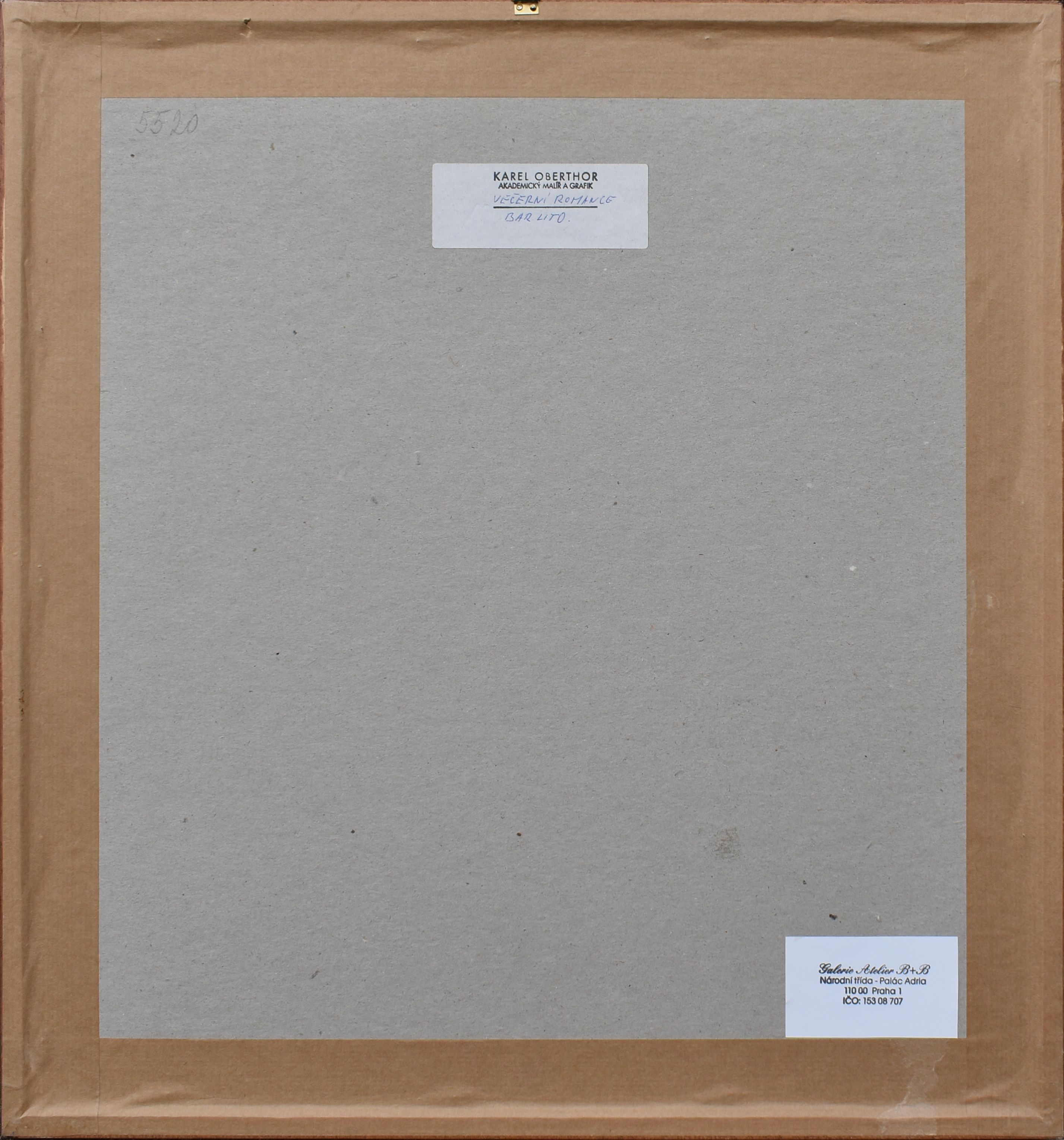 POPIS: Barevná litografie, rozměry ve výřezu pasparty: 31 x 30 cm, zaskleno