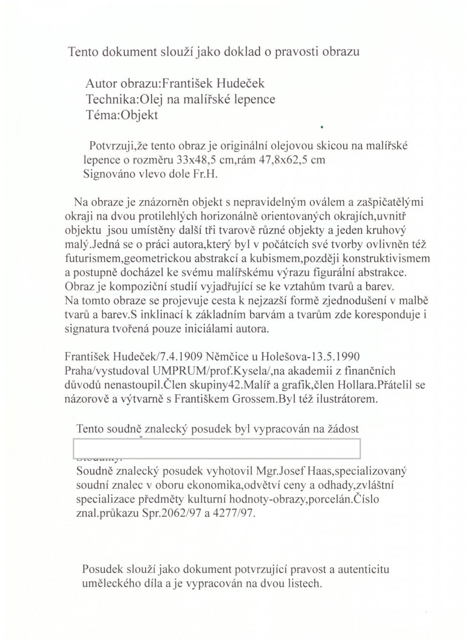 POPIS: Olej na lepence, rozměr 33 x 48,5 cm. Přiložen znalecký posudek