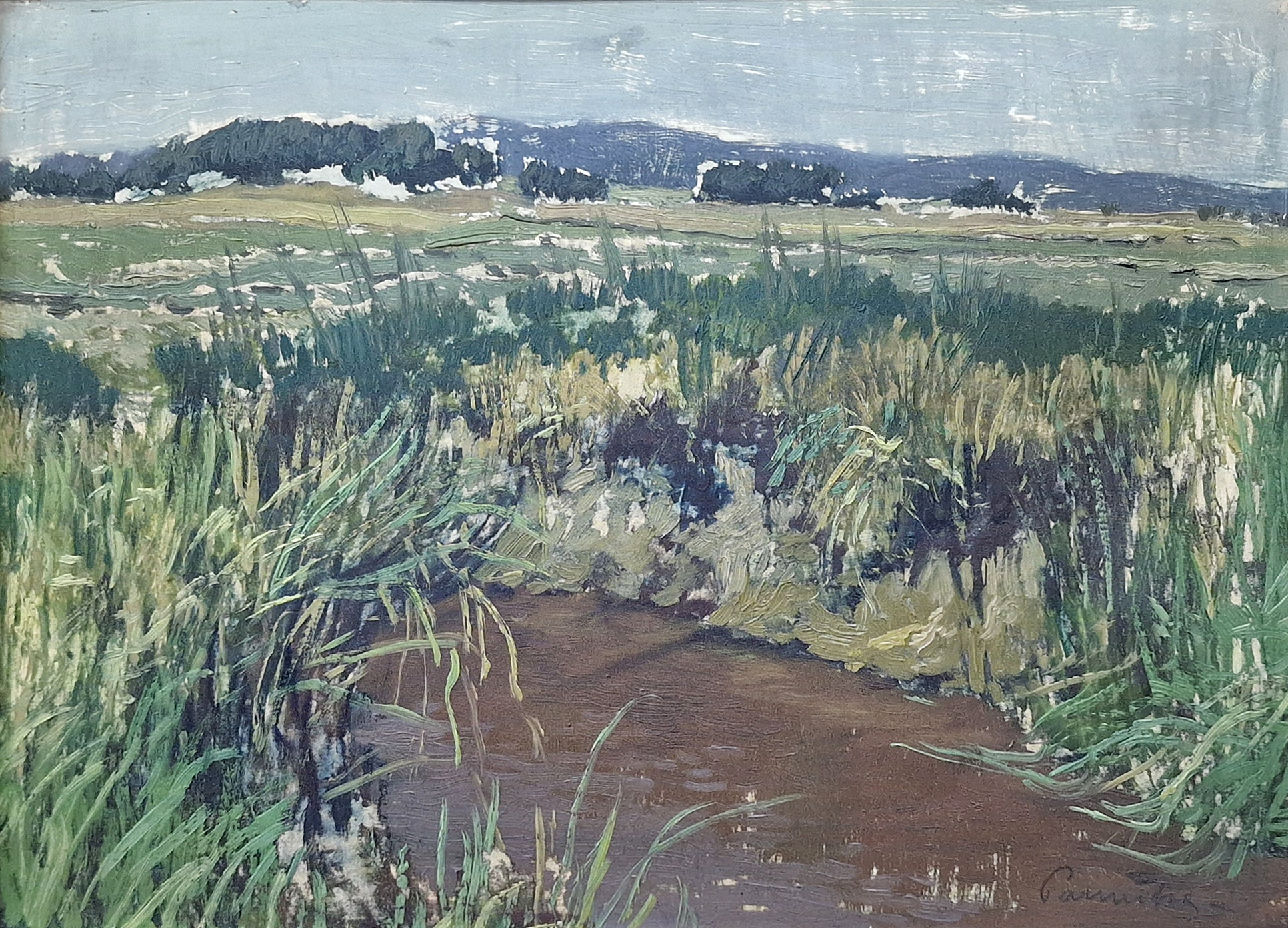 POPIS: Olej na slabé lepence/silném papíru, rozměr 23 x 31 cm