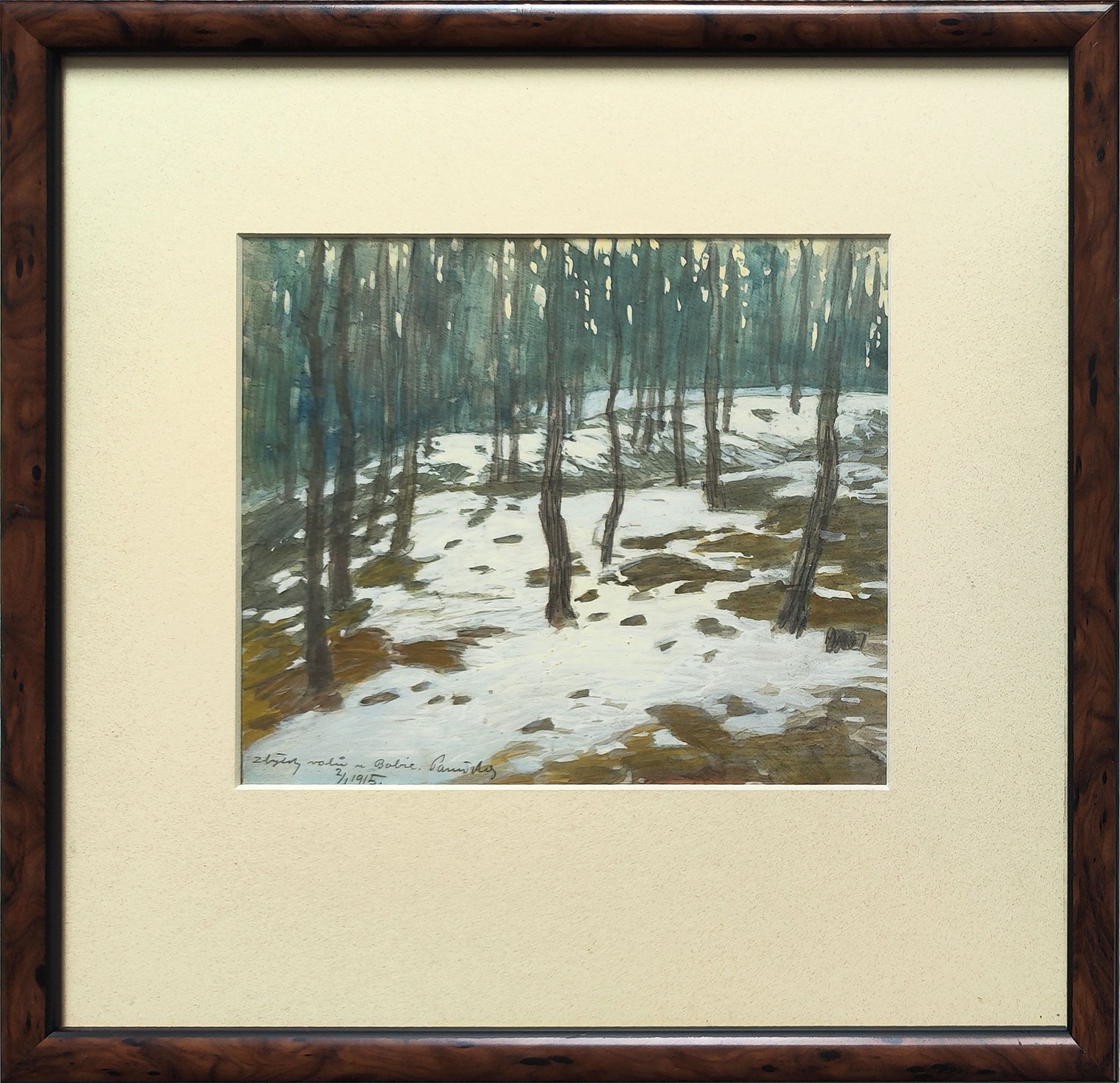POPIS: Kvaš, rozměry ve výřezu pasparty: 14 x 16,5 cm, zaskleno