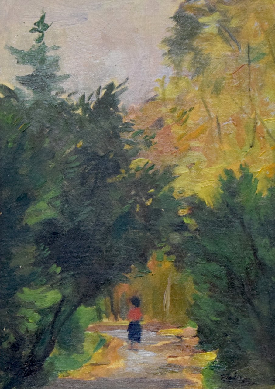 POPIS: Olej na lepence, rozměr 20 x 14,5 cm, zaskleno