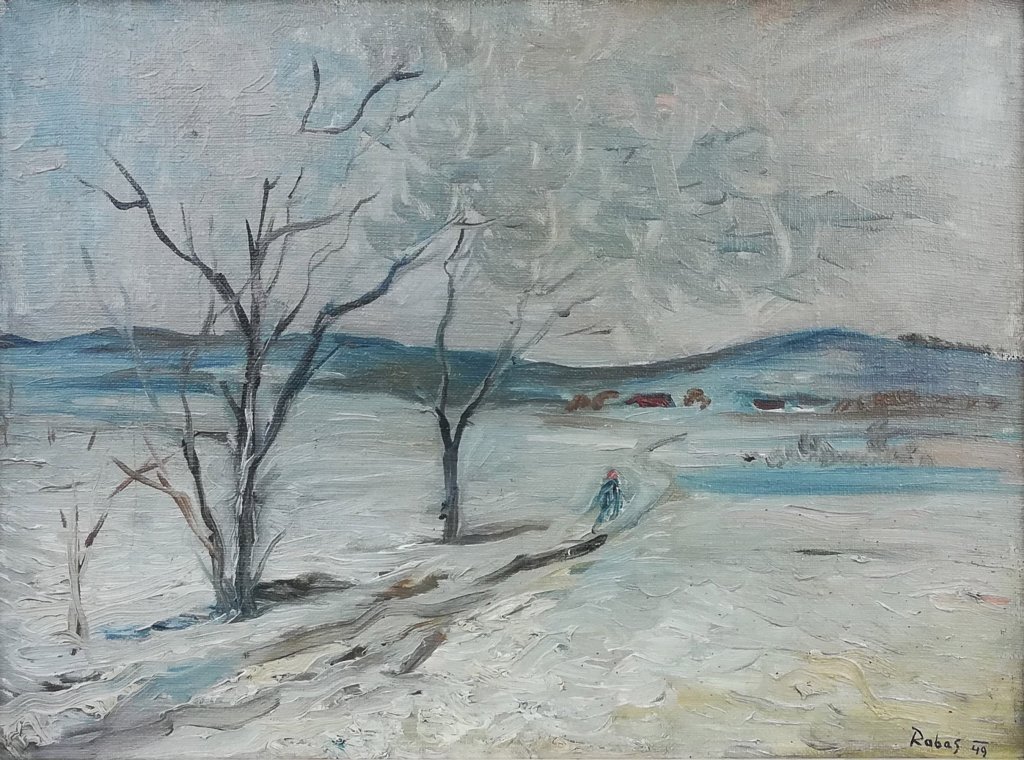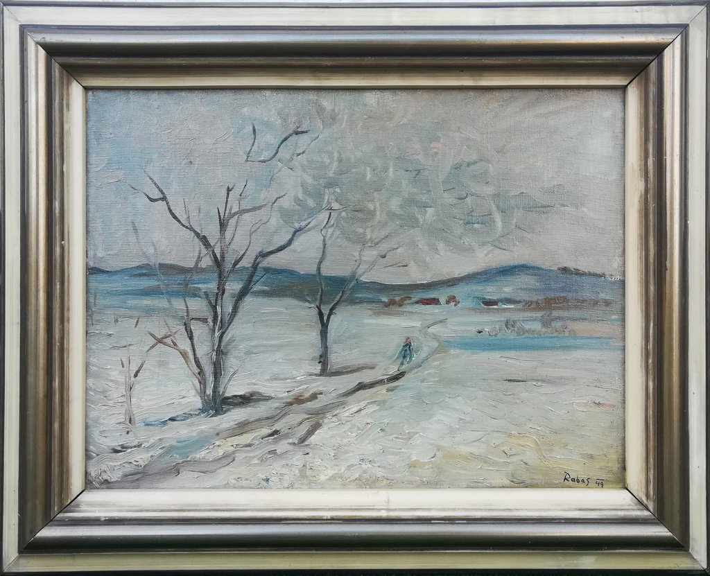 POPIS: Pohled od Rabasova domu. Olej na plátně, rozměr 50 x 70 cm. + Krušovická pole v zimě. Olej na plátně, rozměr: 36 x 48 cm , datováno 1946 + Tři grafiky viz, příloha
