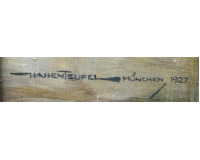 O AUTOROVI: Hans Hassenteufel, 1887 Hamburg – 1943 München německý portrétista a malíř aktů. Hassenteufel studoval soukromě u Rudolfa Jacoba Zellera v Hamburku, poté u Waltera Thora v jeho soukromé škole malování a kreslení v Mnichově a na Královské akademii umění v Mnichově u Petera Halma a Franze von Stucka. Po ukončení studií zůstal Hassenteufel v Mnichově a vytvořil řadu portrétů a ženských aktů, často v orientálním prostředí. Málokdy maloval krajiny a zátiší. Mnoho z jeho děl se objevilo v tištěné podobě ve formě pohlednic.