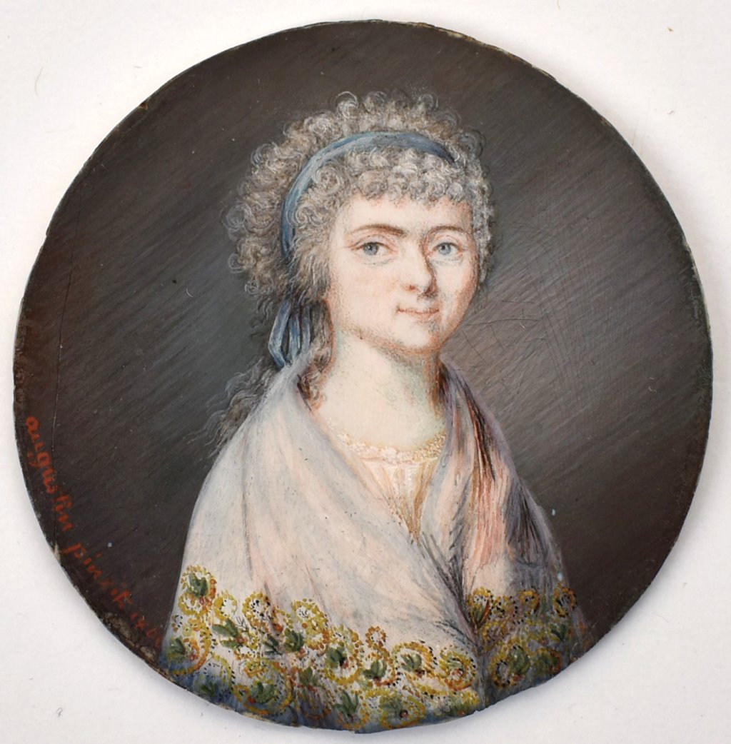 O AUTOROVI: 1759 - 1832 byl francouzský malíř miniatur Augustin se narodil v Saint-Dié-des-Vosges a zemřel v Paříži. Možná měl nějaké lekce od Jean-Baptista Claudota a možná také od Jeana Girardeta v Nancy . Po několika měsících v Dijonu v roce 1781 přijel do Paříže téhož roku, kde si brzy získal slávu. Během dnů francouzské revoluce cestoval do Brestu (1789) a do Saint-Dié-des-Vosges (1791). V roce 1800 se oženil se svou žačkou Pauline Ducruetovou, o 22 let mladší než on. Pracoval pro Napoleona a jeho doprovod a v roce 1806 získal zlatou medaili jako uznání za své dovednosti. V roce 1814 ho Ludvík XVIII jmenoval řadovým malířem Králova kabinetu, později malířem zahraničních věcí a v roce 1819 malířem miniatur královské komory a kabinetu. V roce 1821 byl vyznamenán Řádem čestné legie . V roce 1791 vystavoval na Exposition de la Jeunesse a od té doby až do roku 1831 se účastnil také pařížského salonu. Zemřel na choleru v roce 1832 a byl pohřben na hřbitově Père Lachaise. Augustin byl vedle Isabey nejvýznamnějším učitelem malby miniatur své doby; učil více než 400 žáků, včetně Besselièvre, Borel, Comte, Delacazette, Delatour, Fontallard, Mirbel , Sieurac, Sparrgren a Tixier de Ladouce. Zdroj Wikipedia
