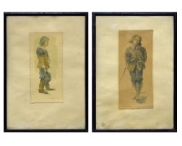 POPIS: 2 X akvarel, rozměry malby 19,5 x 8,5 cm a 17,5 x 8 cm