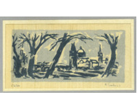 POPIS: Litografie, rozměr ve výřezu 9,5 x 18,5 cm, zaskleno