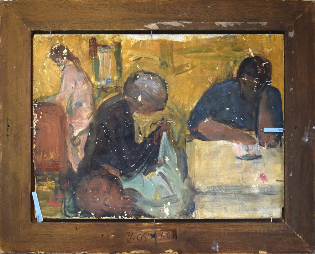 POPIS: Olej na lepence, rozměr 40 x 30 cm, zaskleno, zezadu obraz : Večer doma: rozměr: 30 x 40 cm, obě malby publikovány v monografii