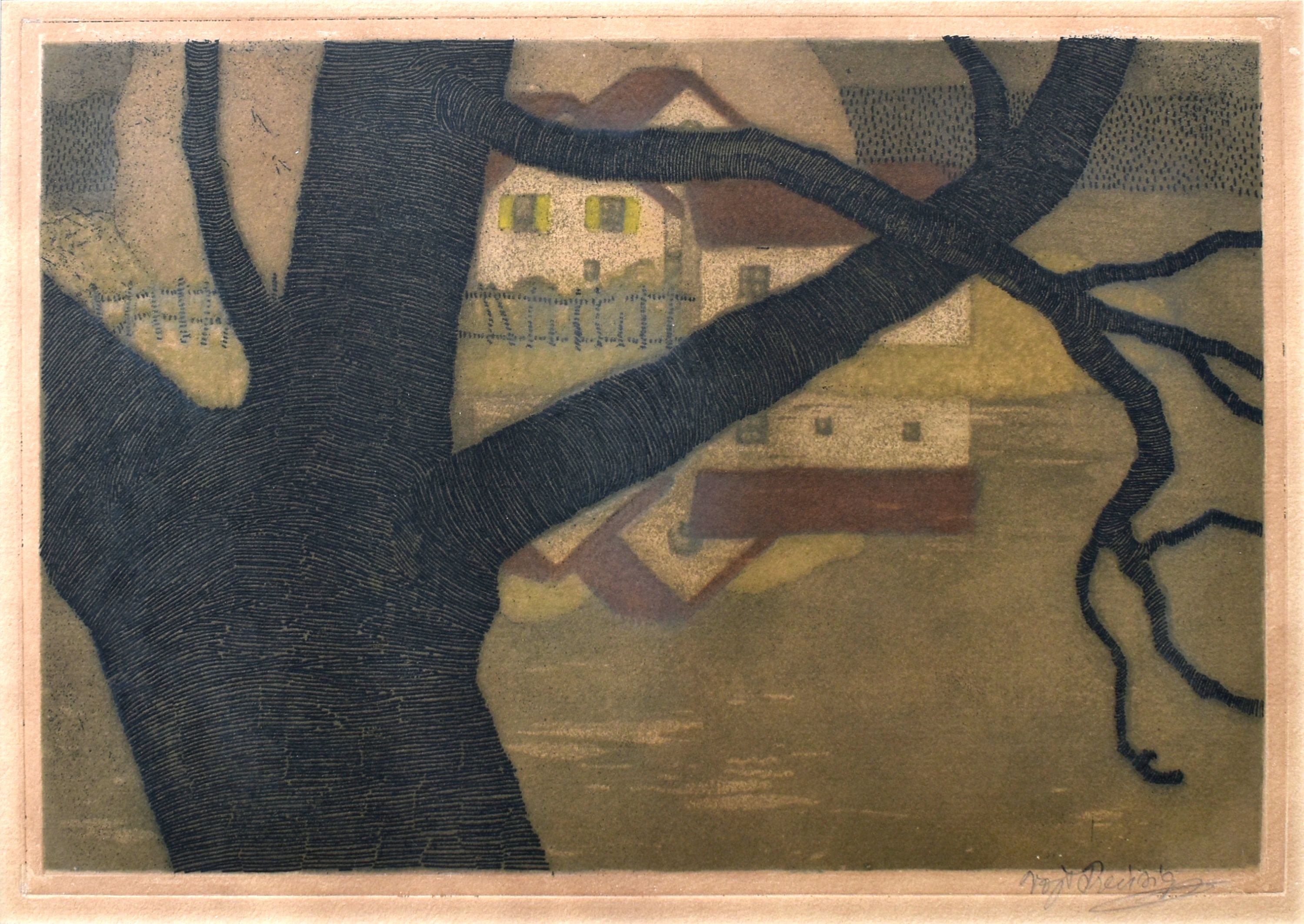 POPIS: Barevná akvatinta /lept/, rozměry ve výřezu pasparty: 28 x 39,5 cm, zaskleno