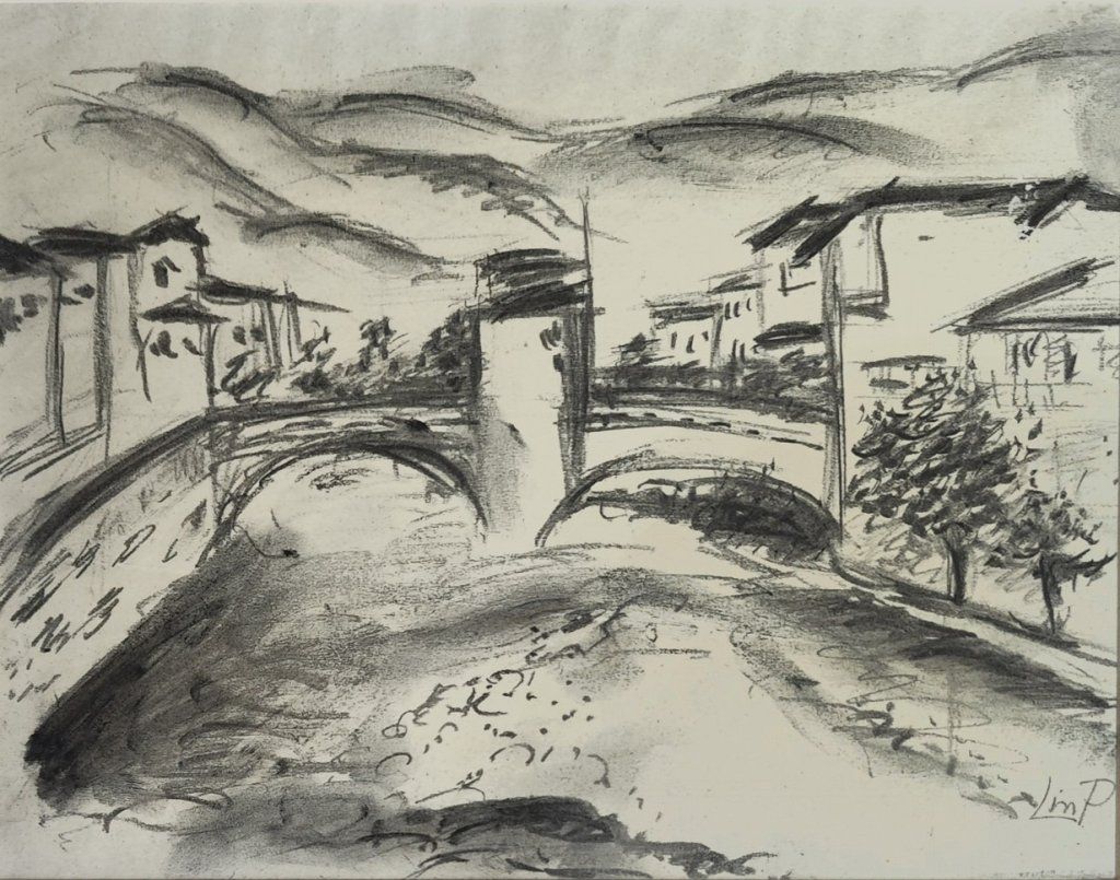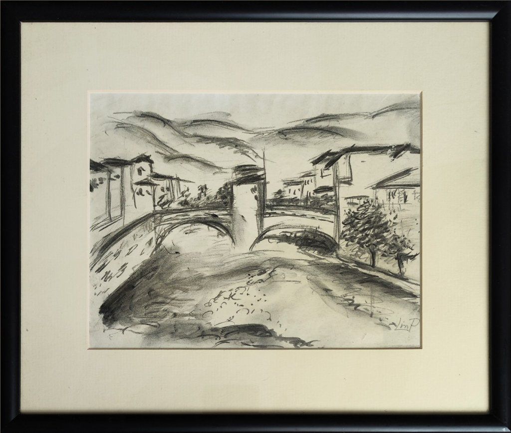 POPIS: Kresba uhlem, rozměry ve výřezu pasparty: 17,5 x 22,5 cm, zaskleno