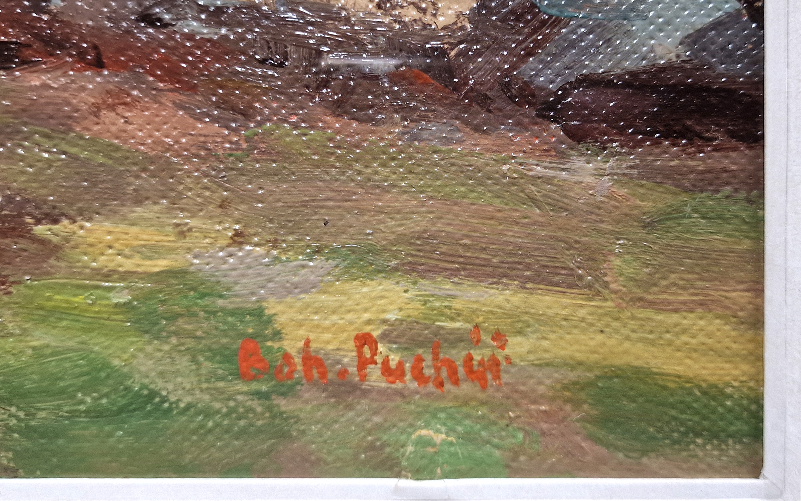 POPIS: Olej na plátně fixováno na lepence, rozměr ve výřezu 29,5 x 49,5 cm, zaskleno