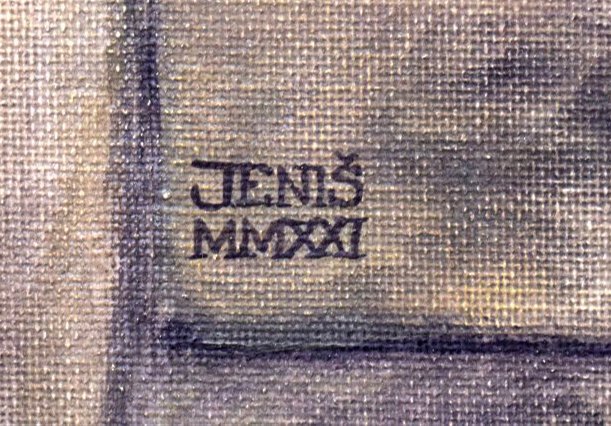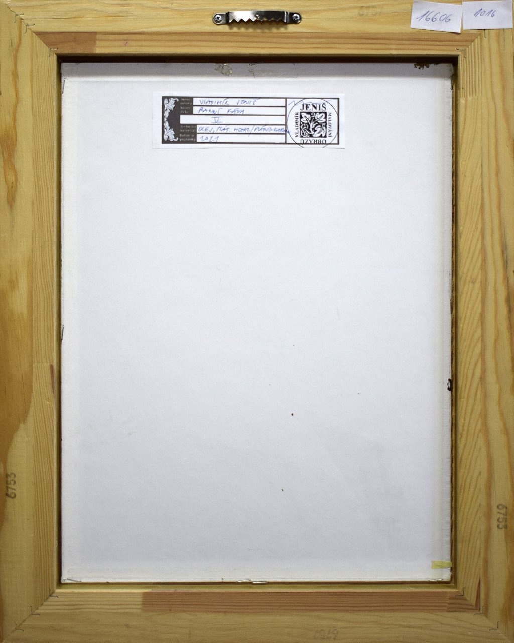 POPIS: Olej plus plátkový metál na plátně fixováno na kartonu, rozměr 40 x 30 cm