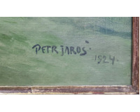 O AUTOROVI: (Praha 29. 6. 1859 – Praha 26. 8. 1929) Petr Jaroš byl krajinář a loutkař. V Praze byl žákem H. Ullika, ve Vídni J. Kautského, později studoval také v Mnichově a v Drážďanech. Po studiích působil v Národním divadle v Brně, kde také maloval dekorace, vystupoval i v brněnském Janáčkově divadle. V Pištěkově divadle v Praze pracoval 10 let pod vedením Budily, Švandy a Hübnera, vytvořil zde také dekorace. Spolupracoval s loutkářským odborem Masarykova Lidovýchovného ústavu v Praze. Jarošovy krajiny v pozdním romantickém stylu vyzařují klid a harmonii. Maloval převážně krajiny z Chodska, např. obraz Jarní krajina u Blanska na Moravě, který byl vystaven na Jubilejní výstavě v r. 1891 (č. kat. 214), je také autorem velkého plátna Pohled na Chodsko od Klenče. V roce 1916 namaloval obraz vily pro významného podnikatele Ing. Jaroslava Berlíka, který byl dárcem Výchovného ústavu v Počátkách. Petr Jaroš zemřel v r. 1929 v Praze.