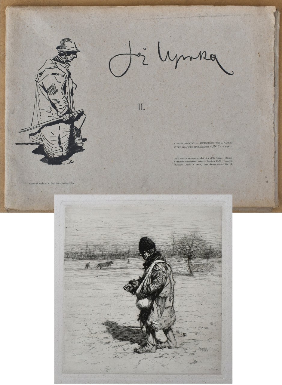 POPIS: Lept a 18 reprodukcí vydavatelství Koč. Rozměry listů: 34 x 45 ,tisková plocha leptu: 13 x 13,5 cm