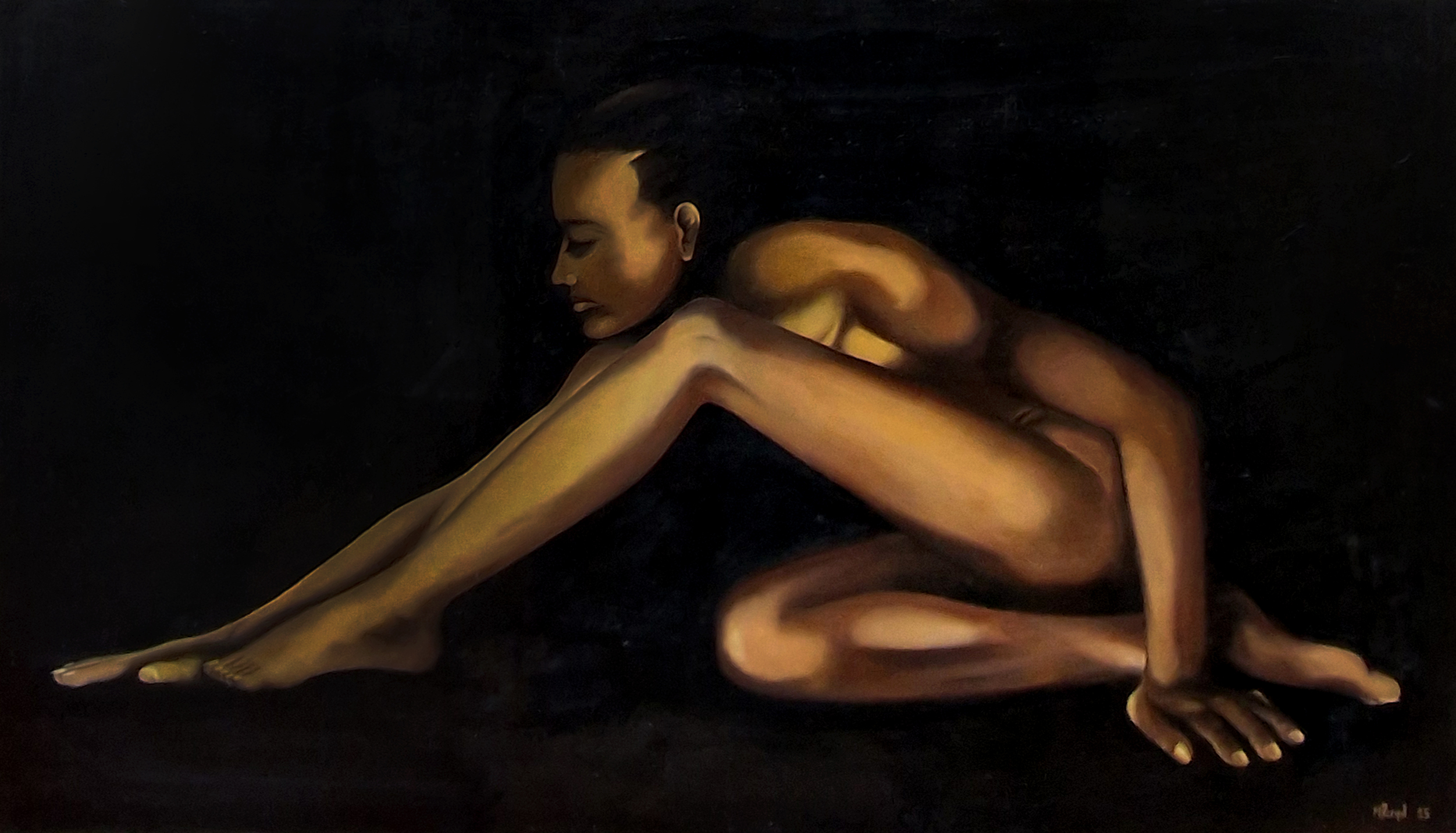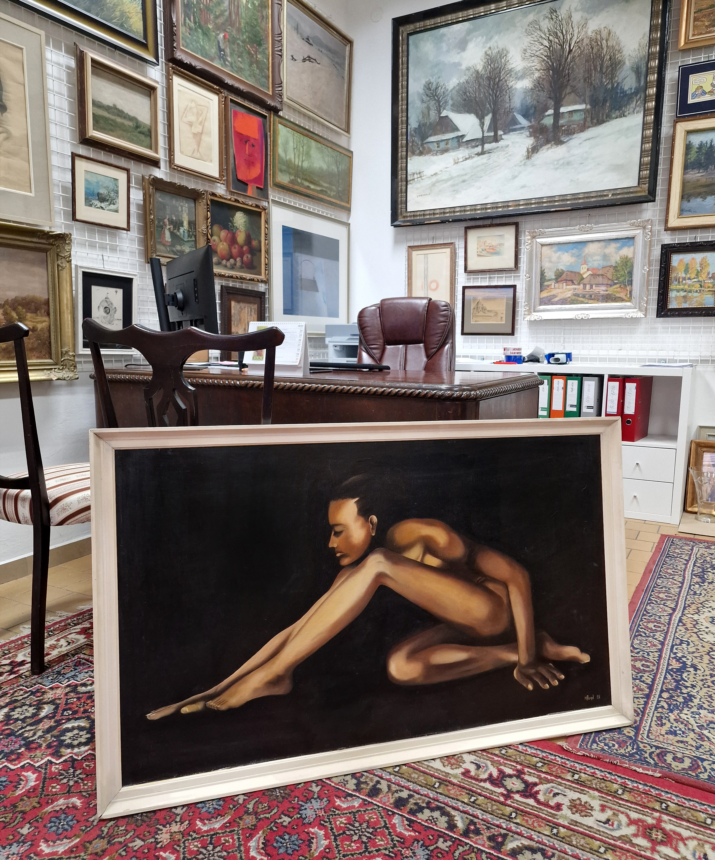 POPIS: Olej na plátně fixováno na sololitu, rozměr 65 x 110 cm