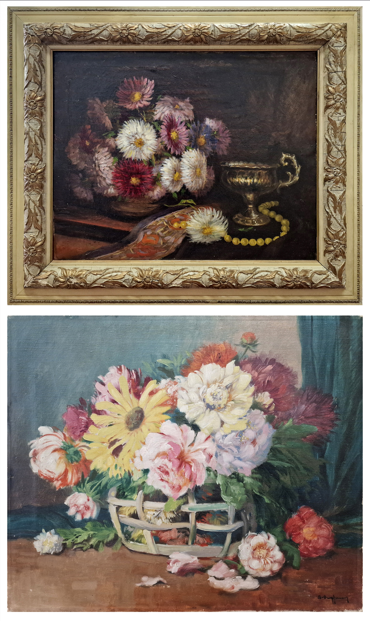 POPIS: 2X olej na plátně, rozměry 45 x 55 cm a 58 x 49 cm, 1X nerámováno