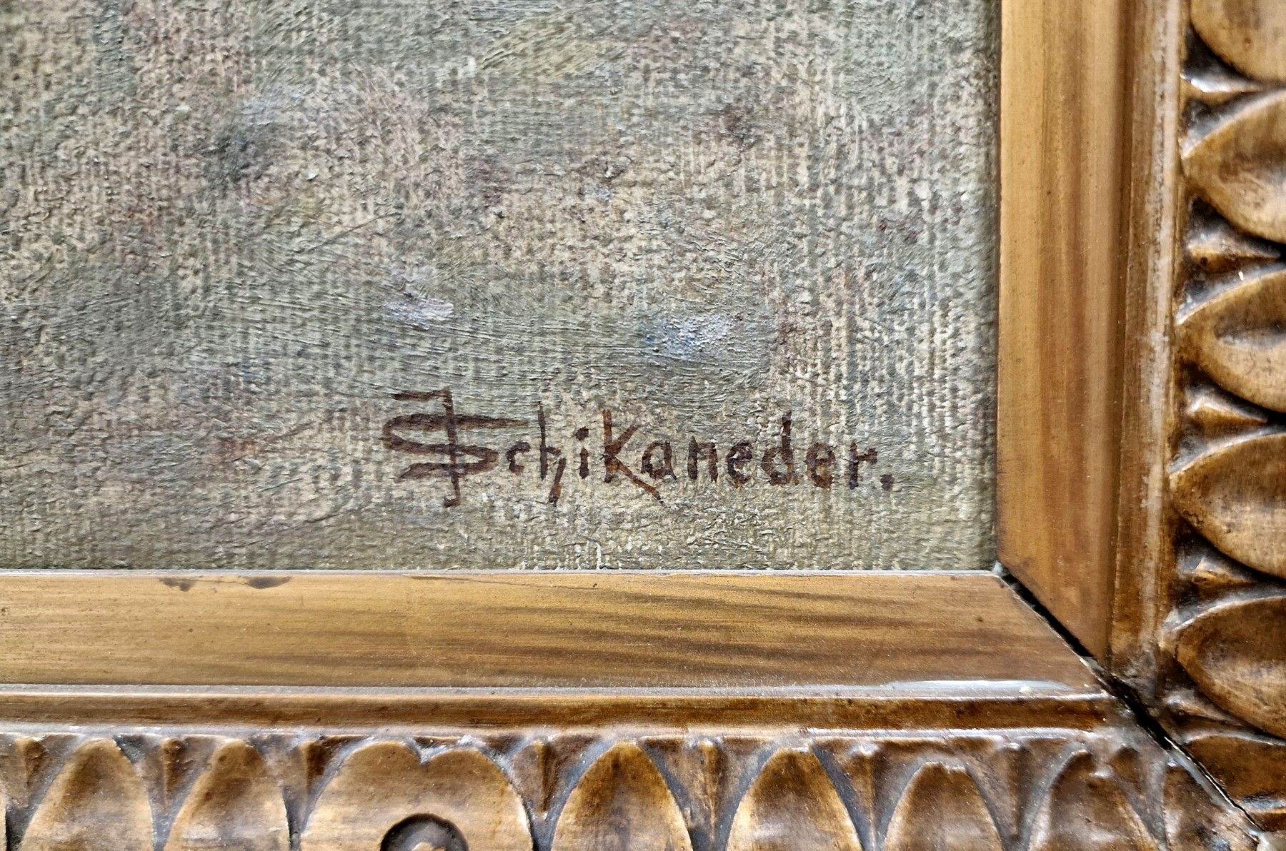 Dílo je dochováno v původním řezaném rámu od rámu Jindřicha Ecka, Identický typ rámu má Schikanederův obraz "V podvečer na Hradčanech" zastoupený ve sbírce Národní galerie. Viz příloha