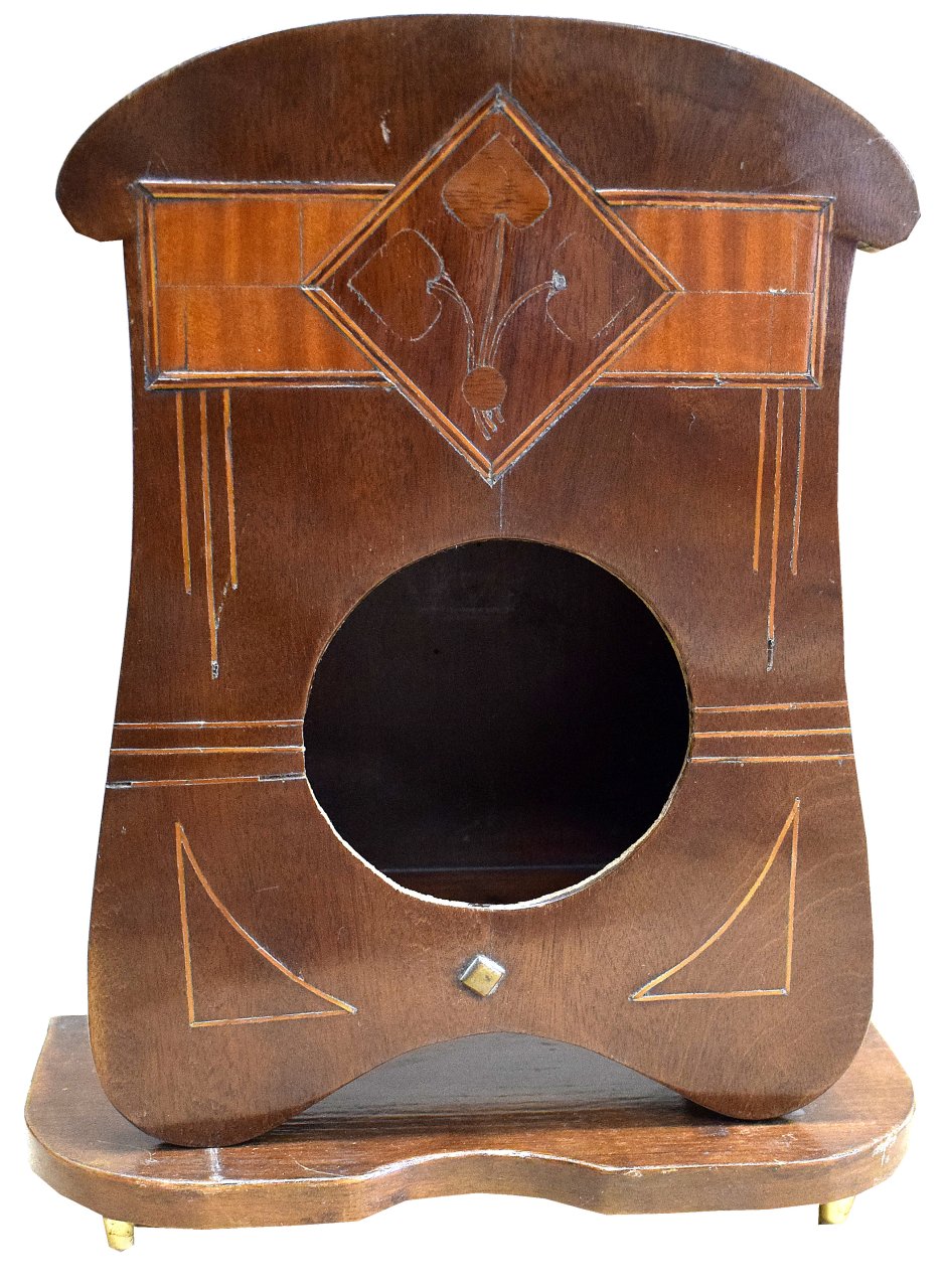 POPIS: Secesní schránka na budík, výška 32,5 cm, průměr otvoru na ciferník 10 cm.