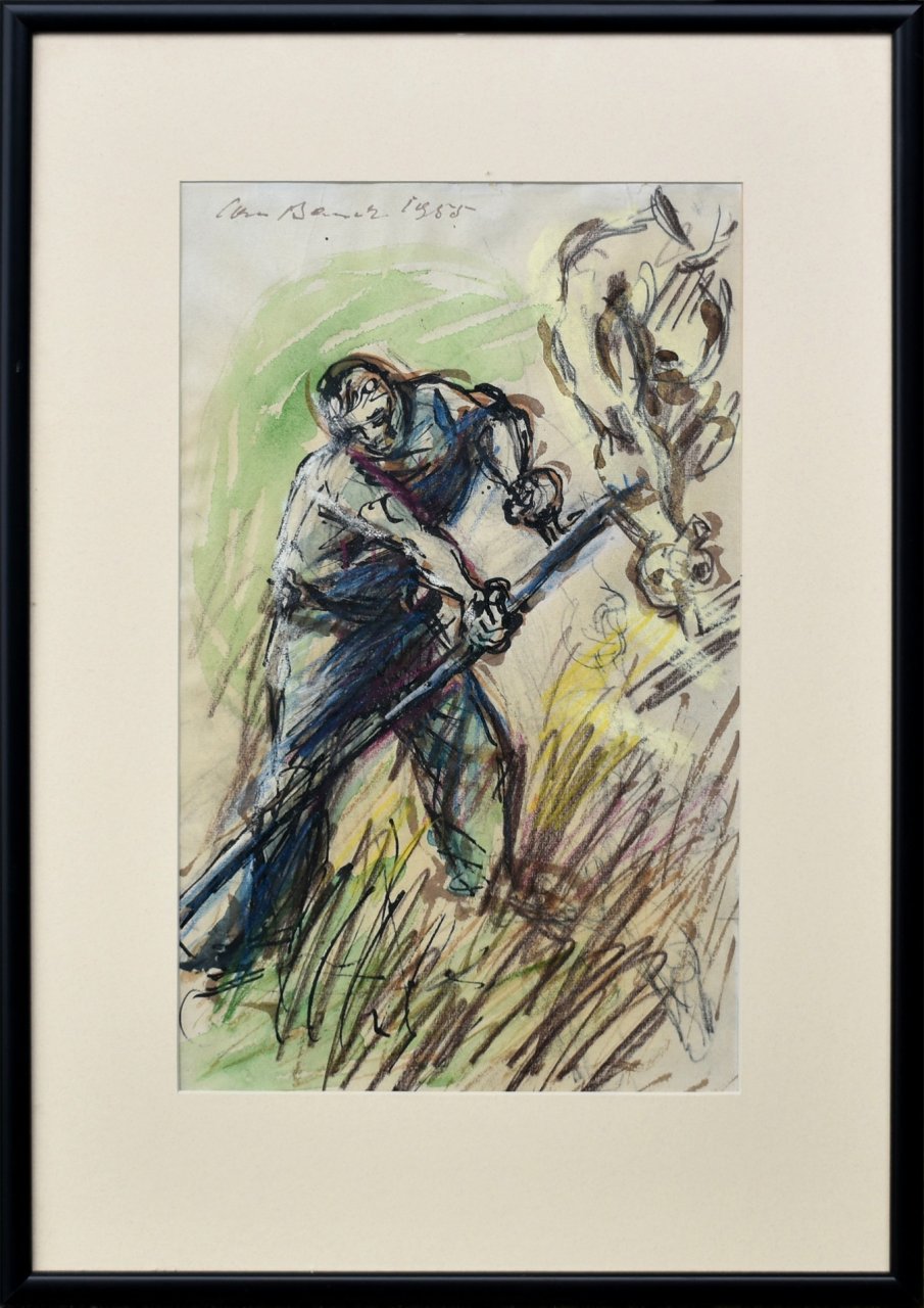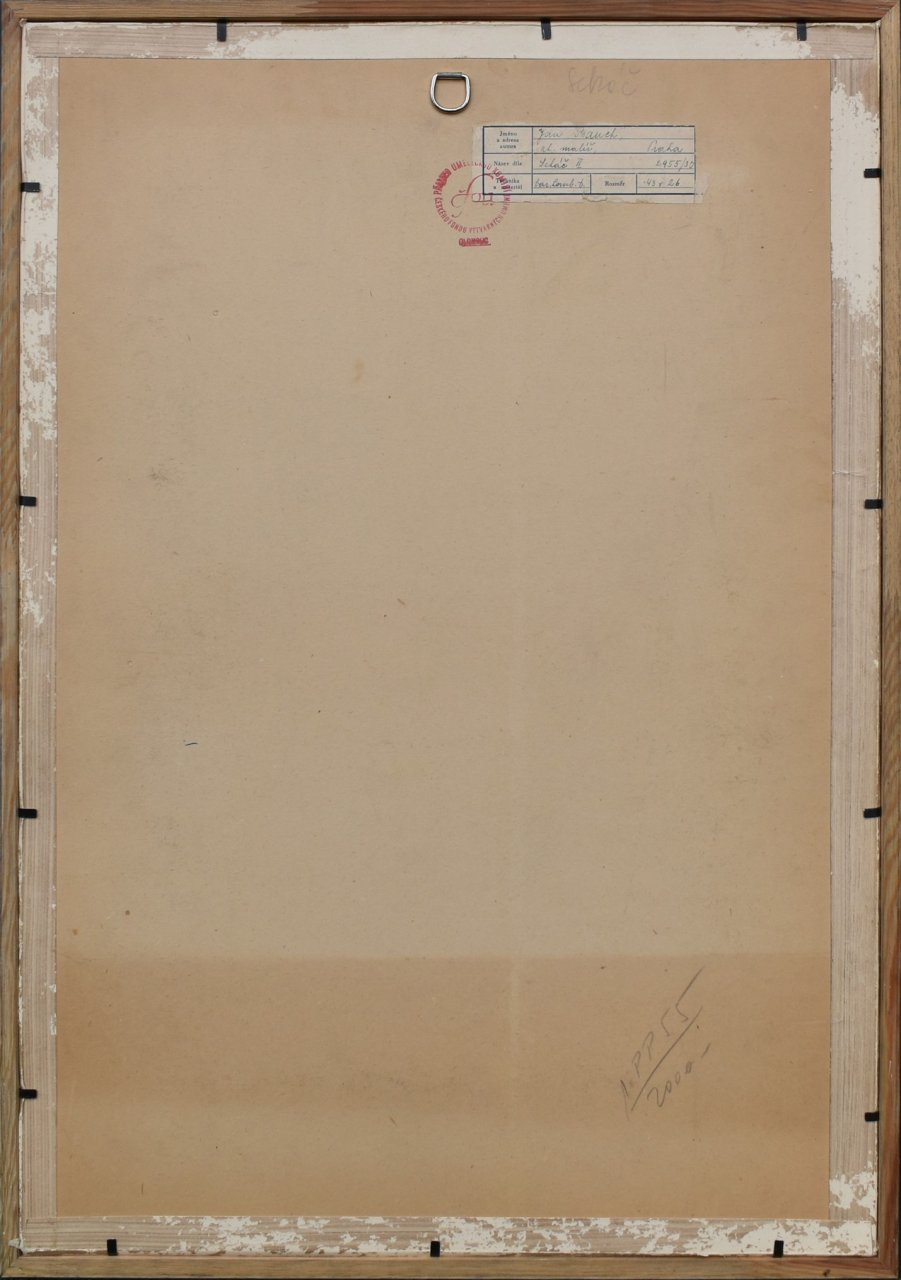 POPIS: Kombinovaná technika, rozměr ve výřezu pasparty: 43 x 26 cm, signováno vlevo nahoře, datováno 1955, zaskleno