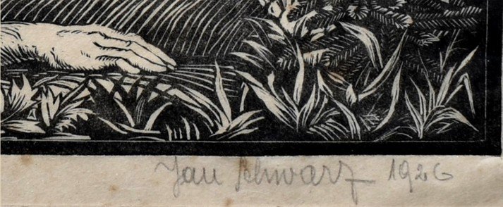 POPIS: Dřevoryt, rozměry ve výřezu pasparty : 31 x 25 cm . Datováno 1926