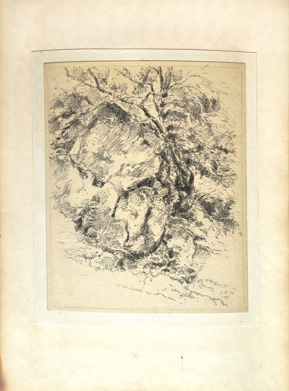 POPIS: Kresba uhlem na tonovaném papíru, rozměry: 30 x 24 cm.