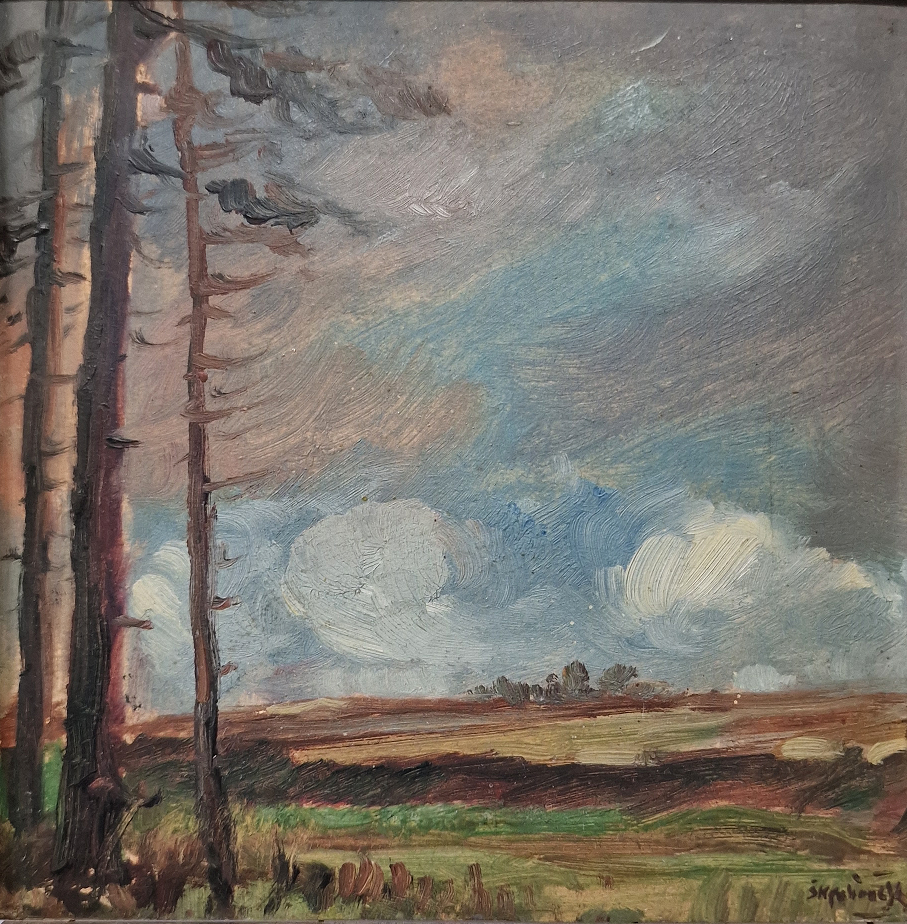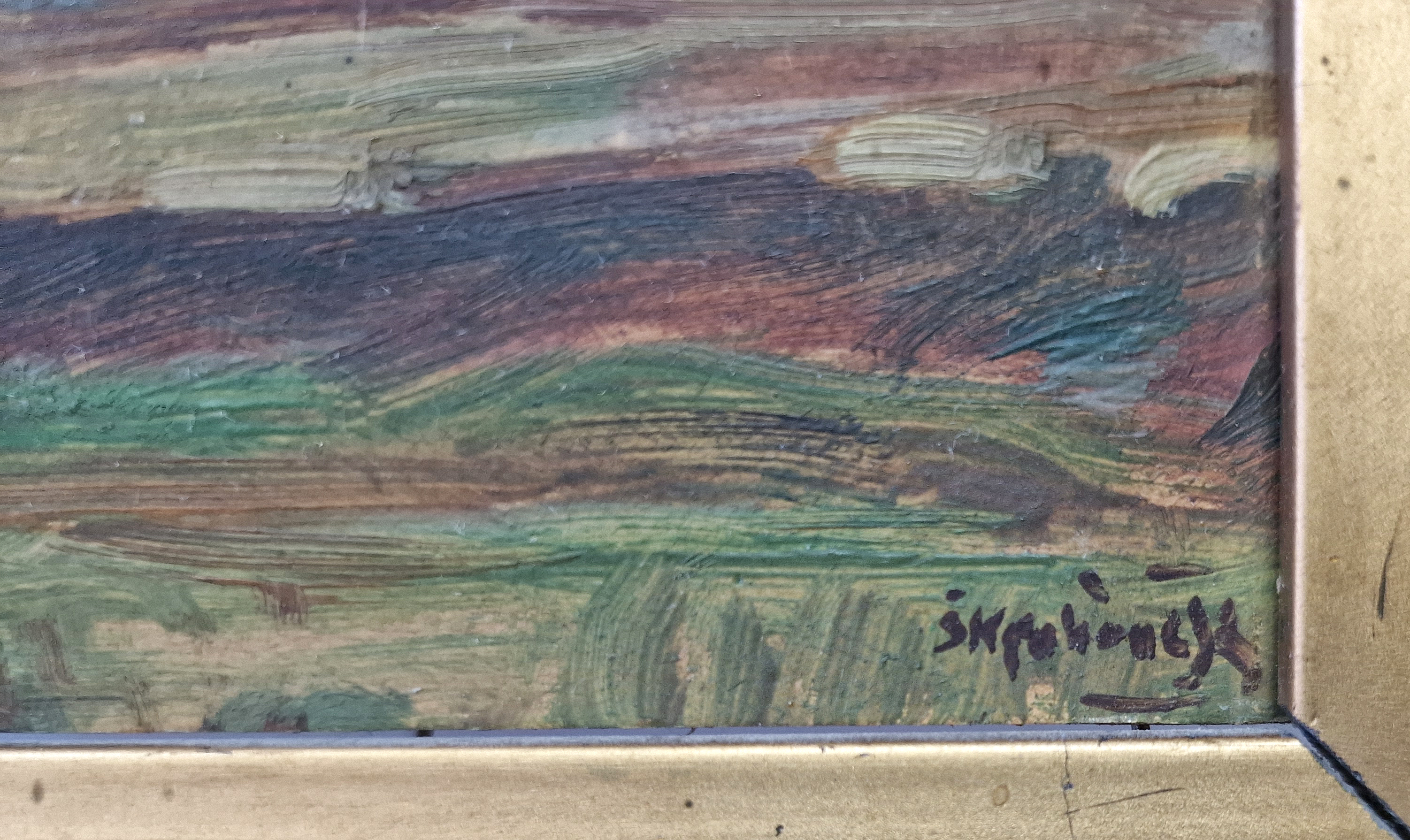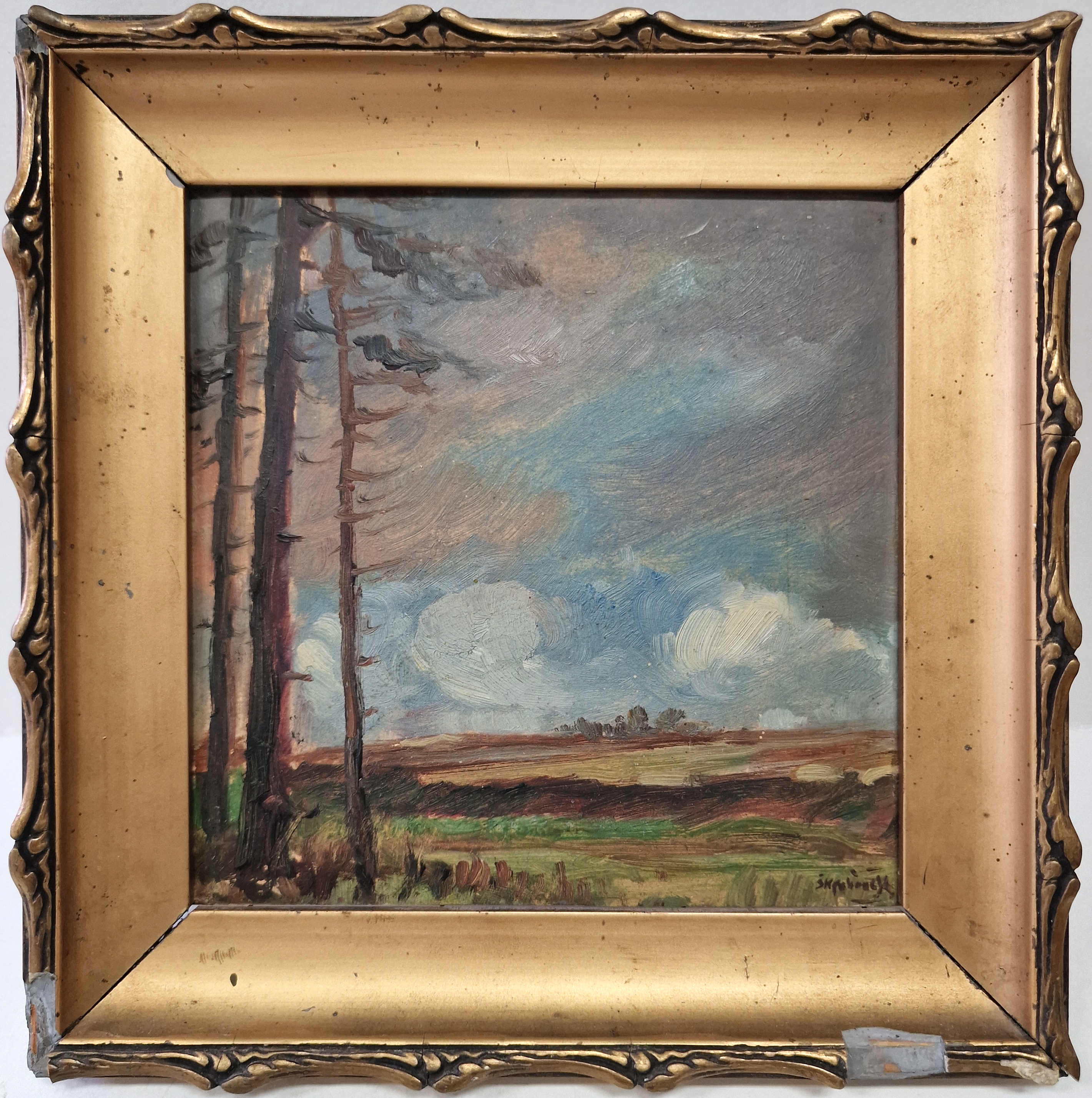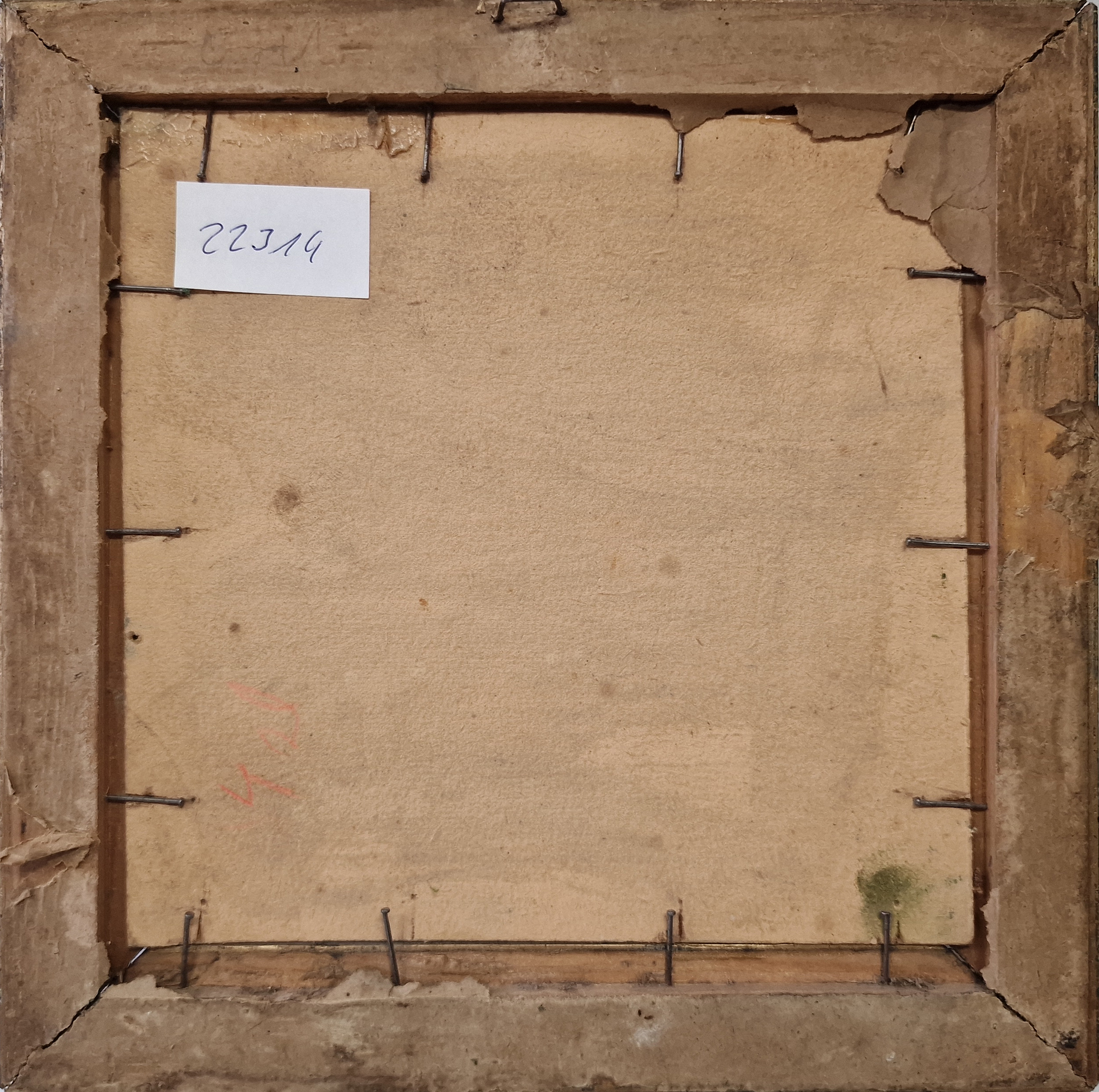 POPIS: Olej na lepence, rozměr 16 x 16 cm, rám poškozen